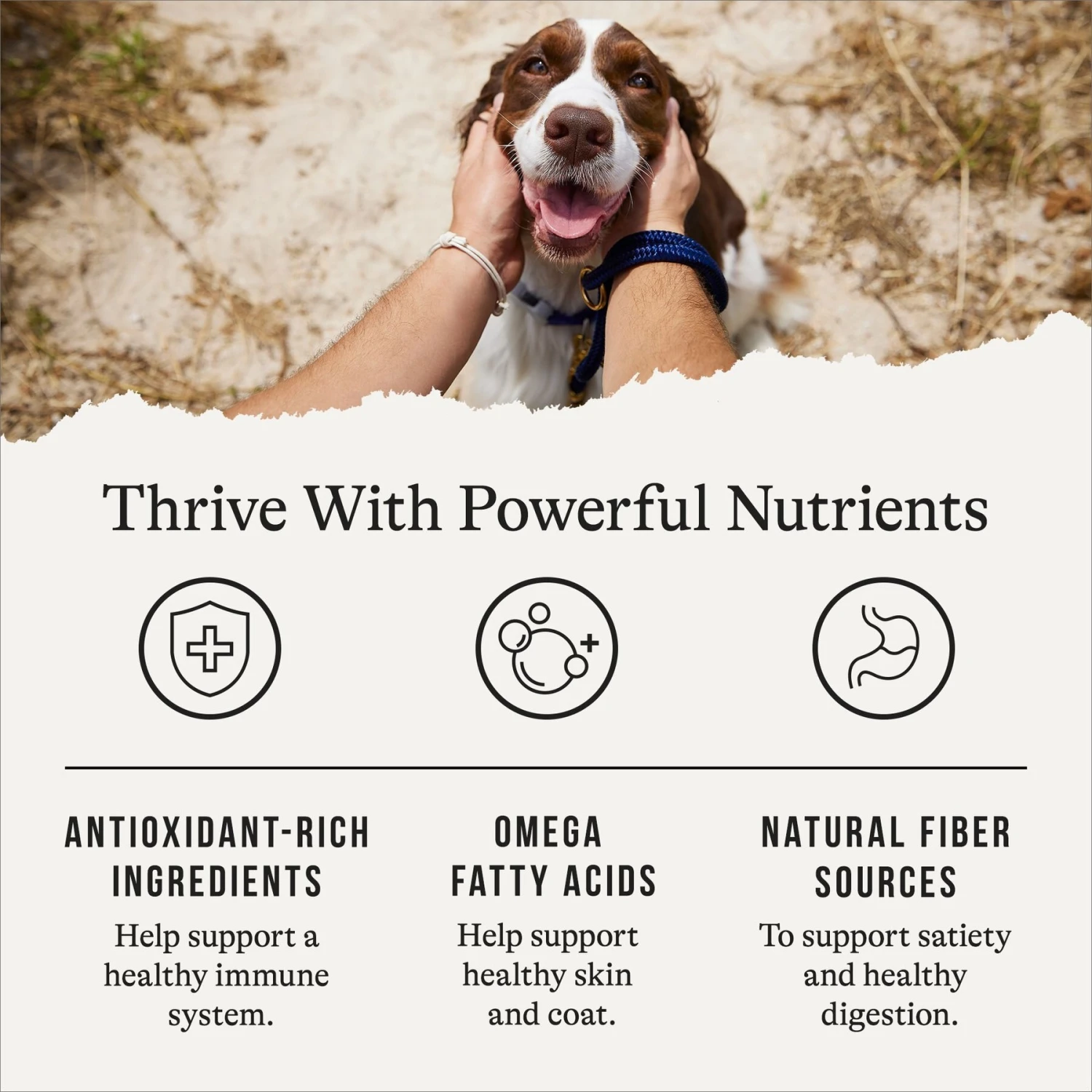- Provides a precise blend of antioxidants and nutrient-rich vegetables, like sweet potatoes and carrots, plus easily digestible, fiber-rich grains to support a healthy immune system and overall well-being.