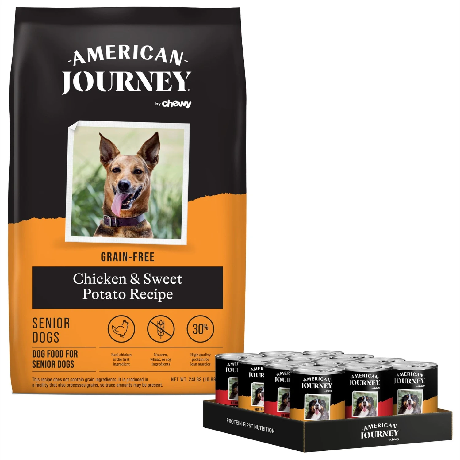 American Journey Senior Chicken & Sweet Potato Recipe Grain-Free Dry Dog Food & American Journey Poultry & Beef Variety Pack Grain-Free Canned Dog Food