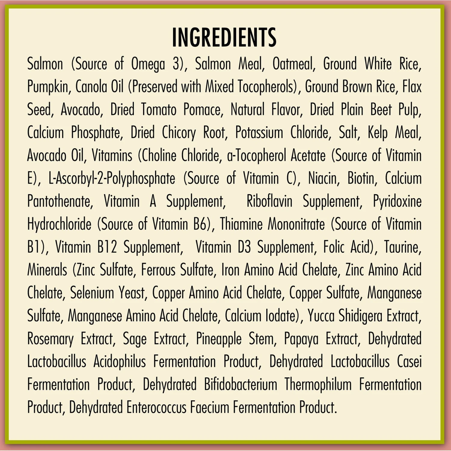 - Features oatmeal, pumpkin and fiber to support sound digestion.