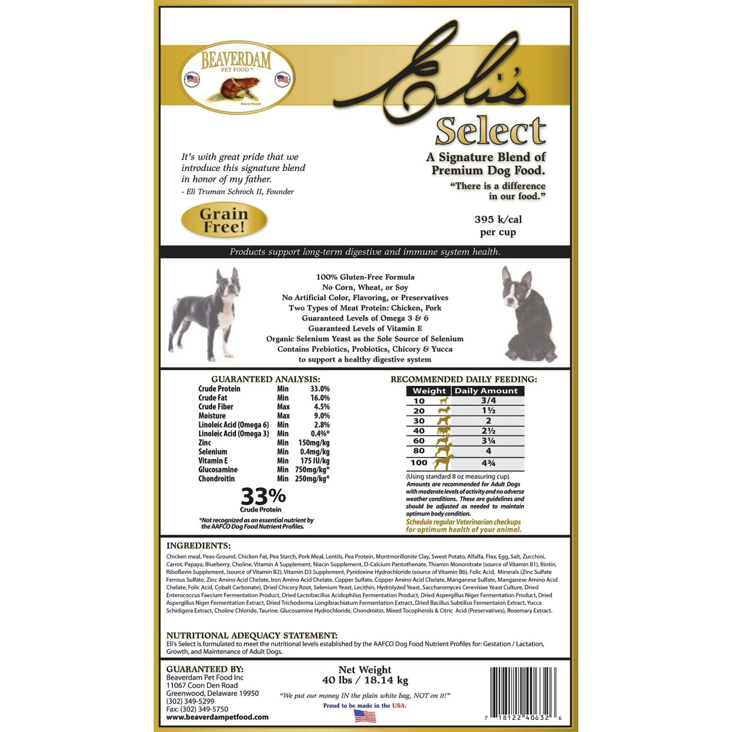 Beaverdam Pet Food Eli’s Select 33/16 Grain-Free Dry Dog Food