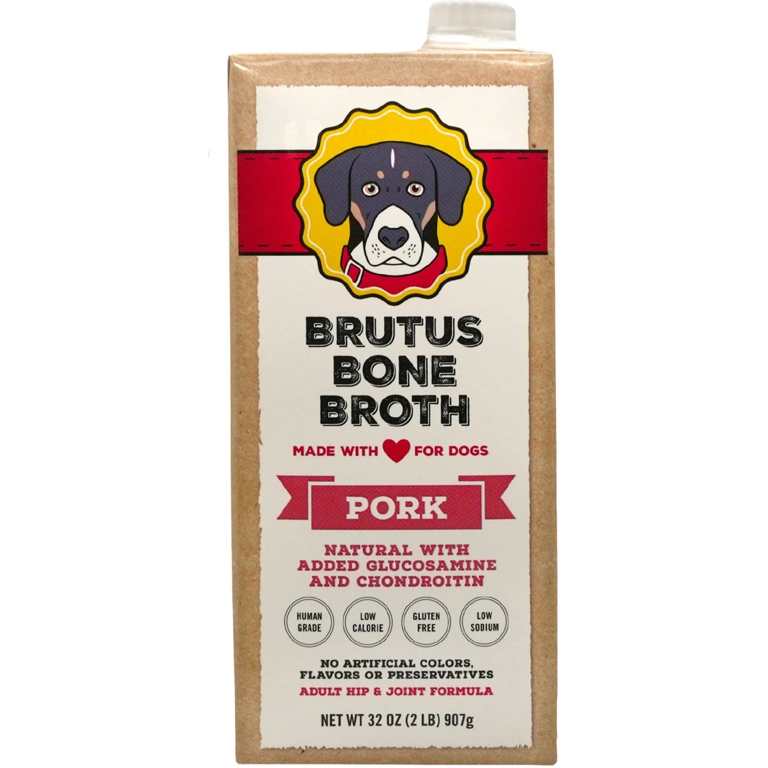 Brutus Broth Pork Flavored Grain-Free Bone Broth Dog Food Topping, 32-oz