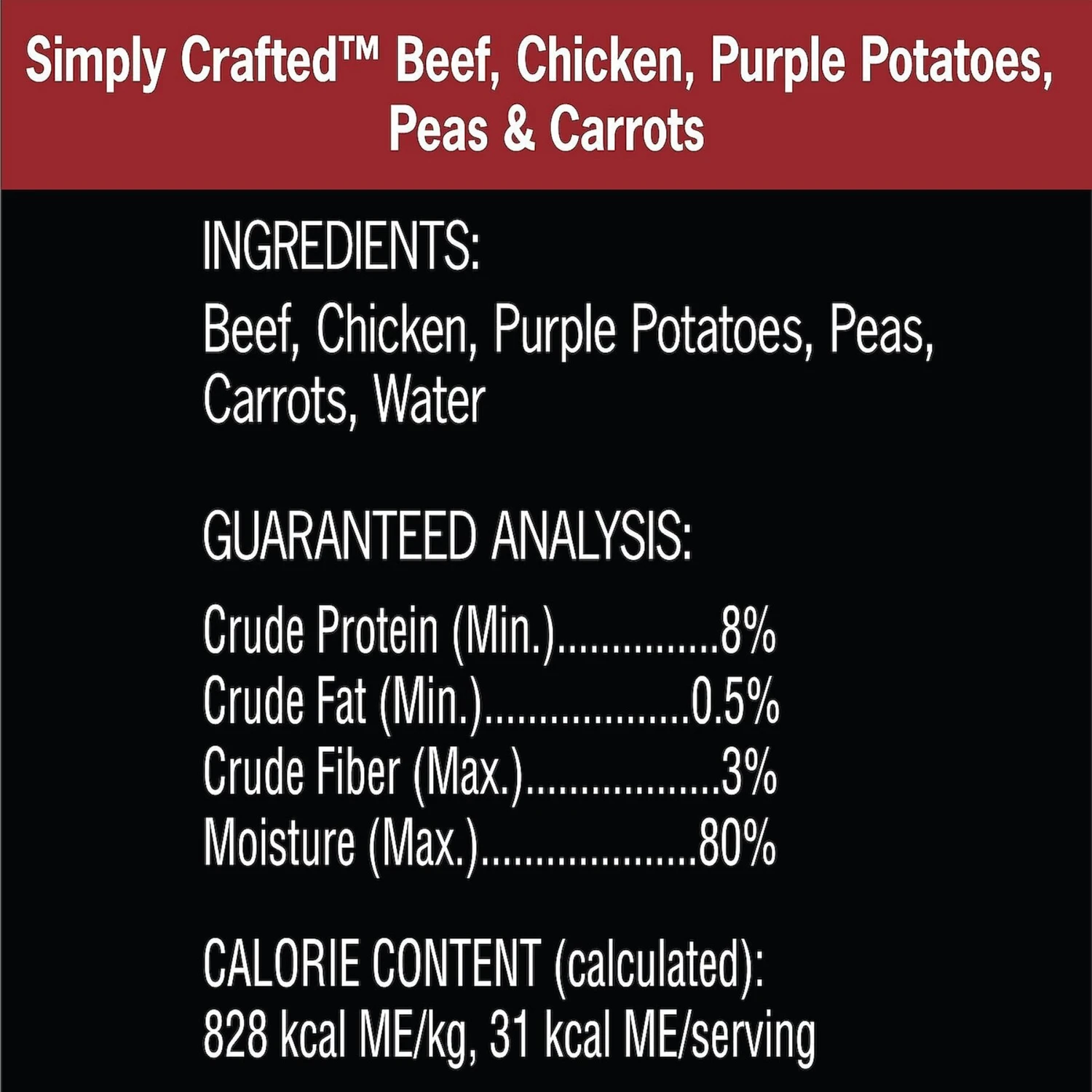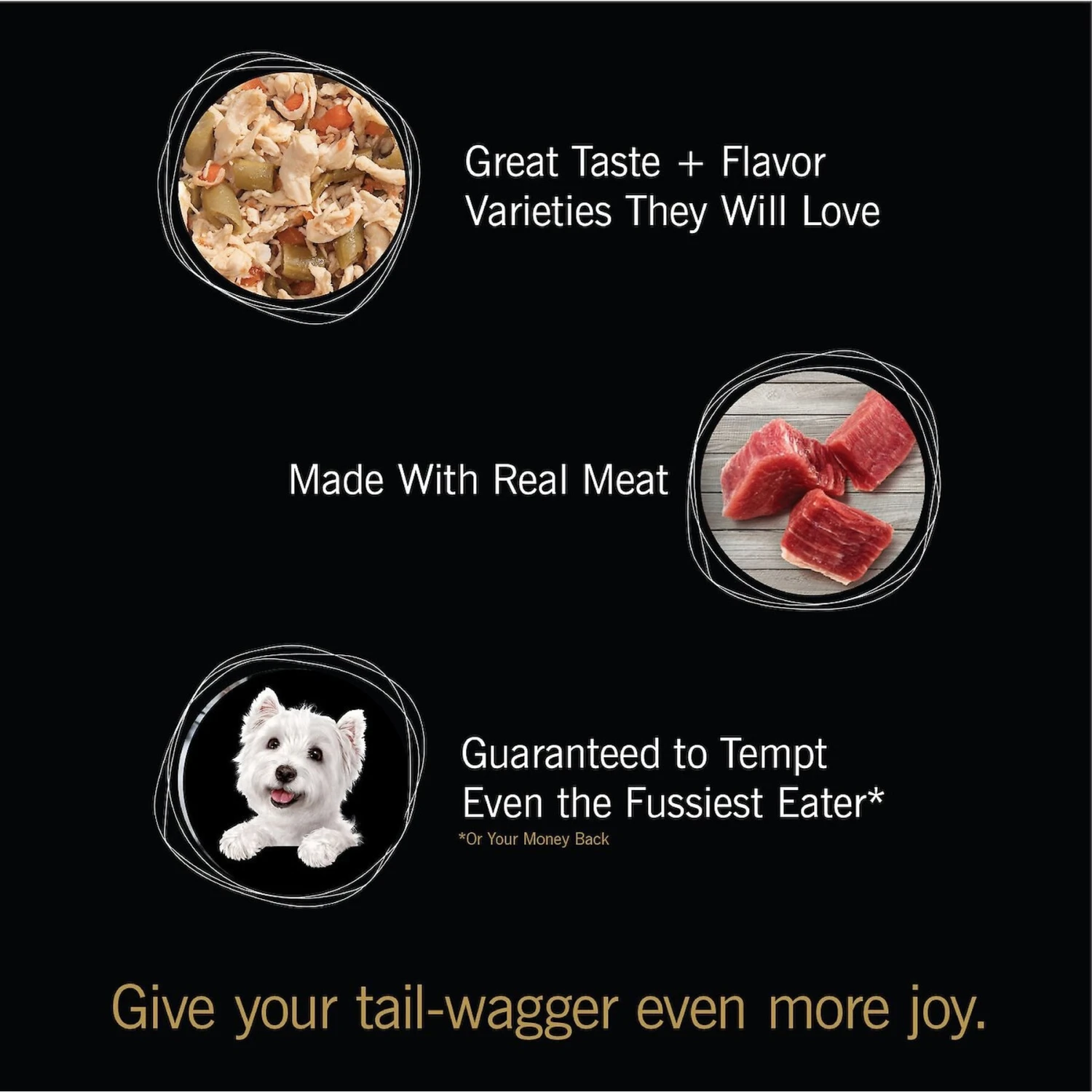 - Real chicken or beef is the first ingredient, plus real veggies.