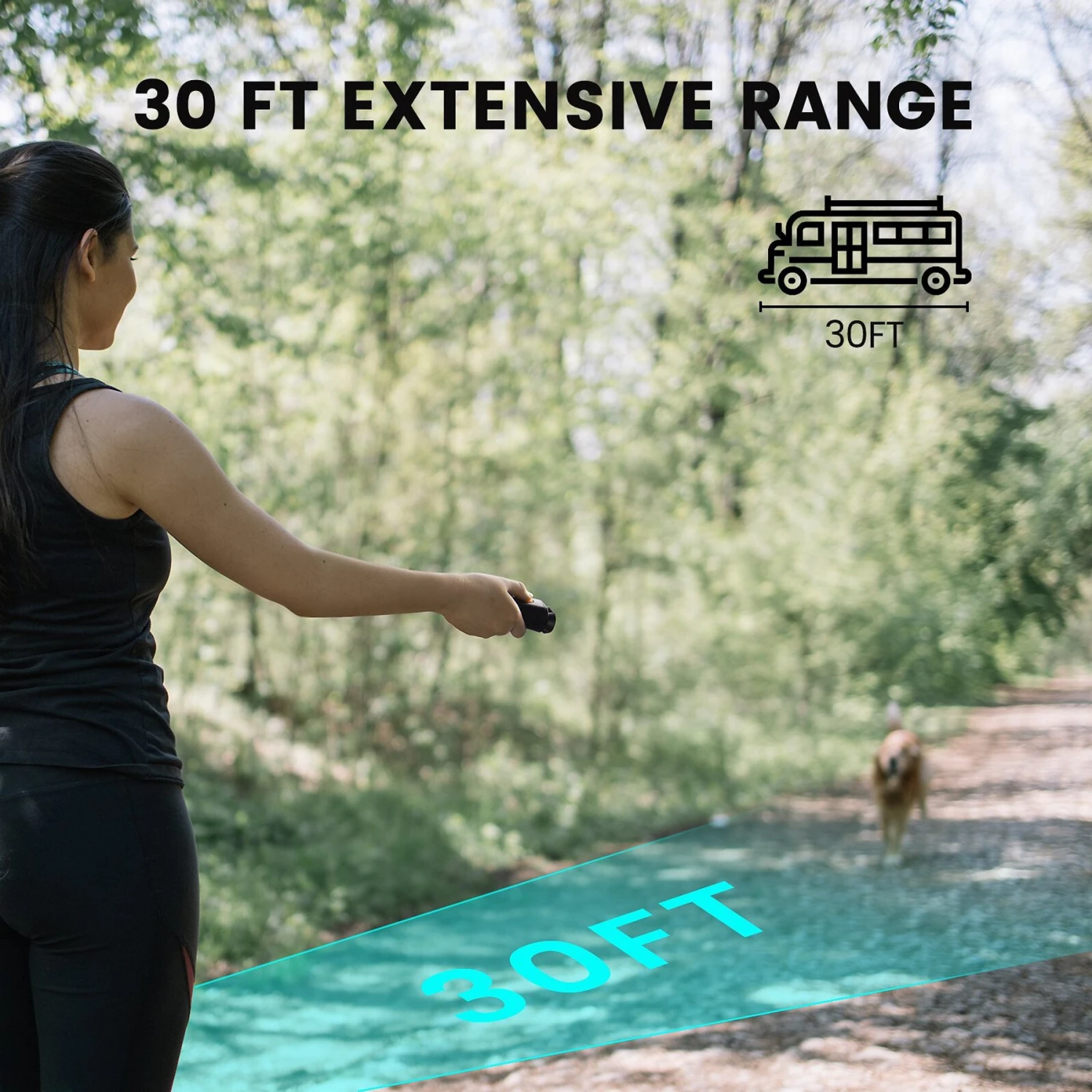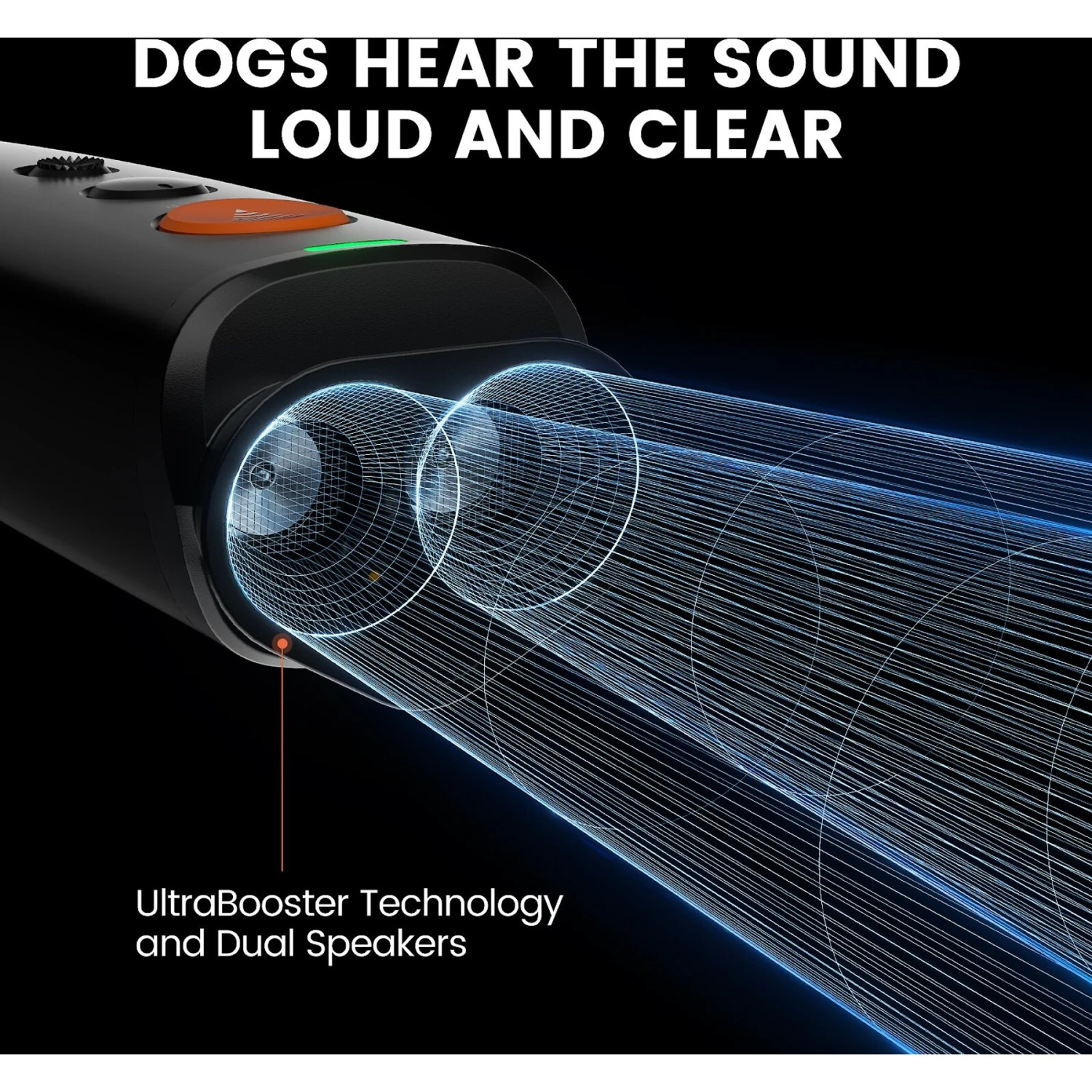 - Features dual-ultrasonic speakers that can reach a range of up to 25 feet.
