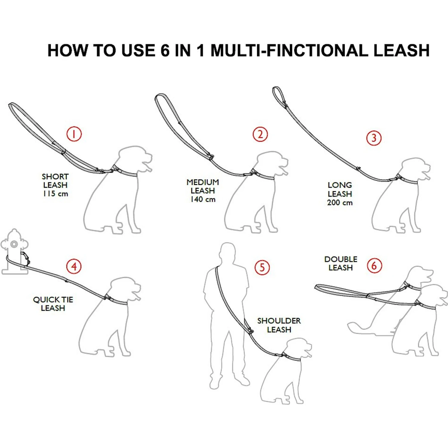 Dogs My Love 6 Way European Multifunctional Leather Dog Leash