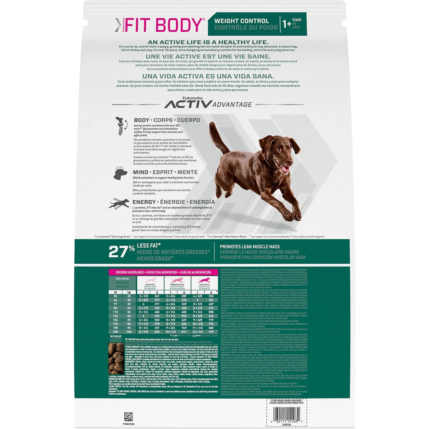 - Helps promote a lean, active body and large dog weight control with L-carnitine, less fat, and an adapted blend of carbohydrates.