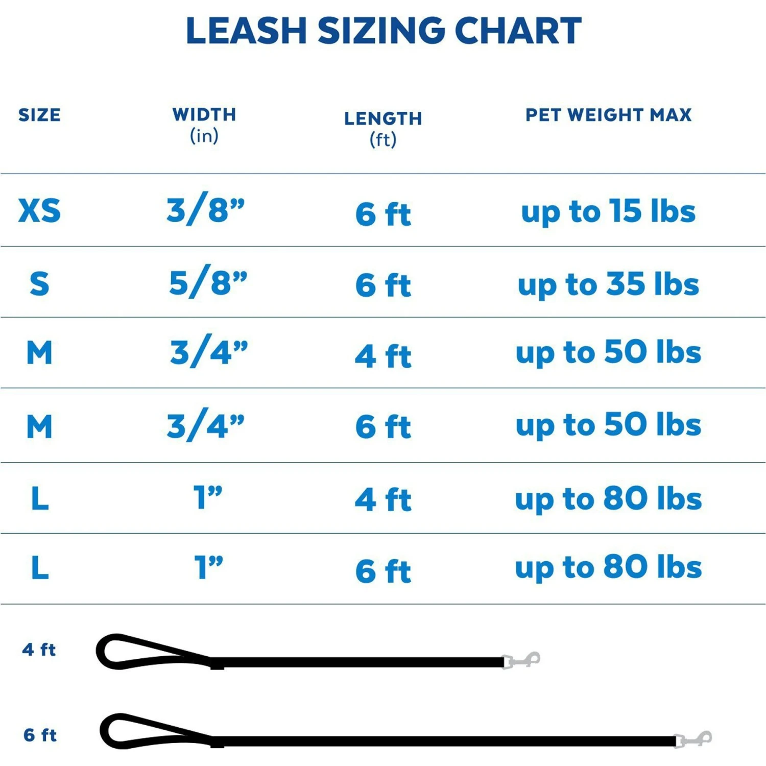 - Traffic leash features two padded handles, one for standard walking and one to help secure your dog.