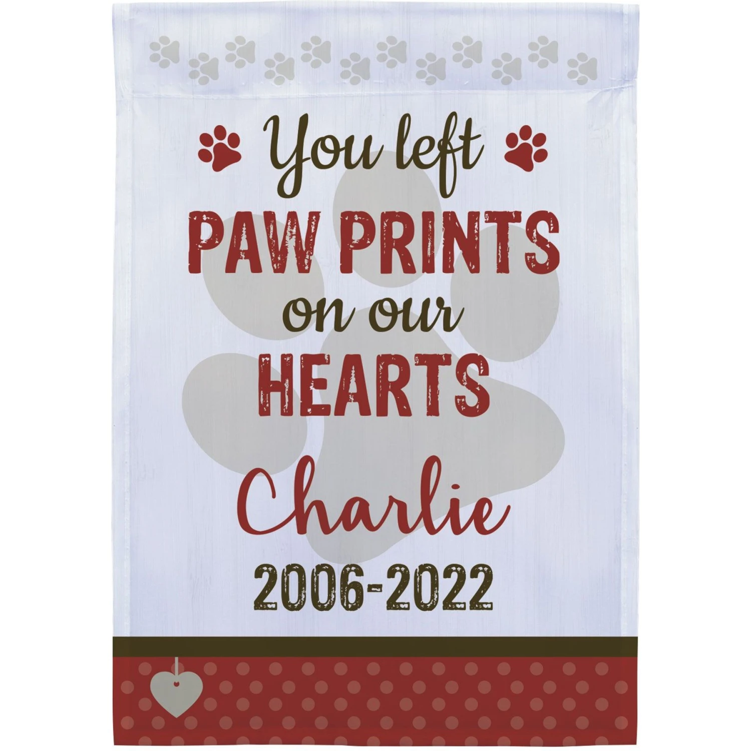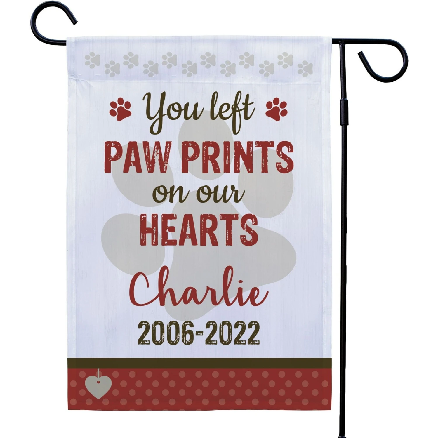 - Personalizable garden flag makes a great keepsake for you or another pet parent.