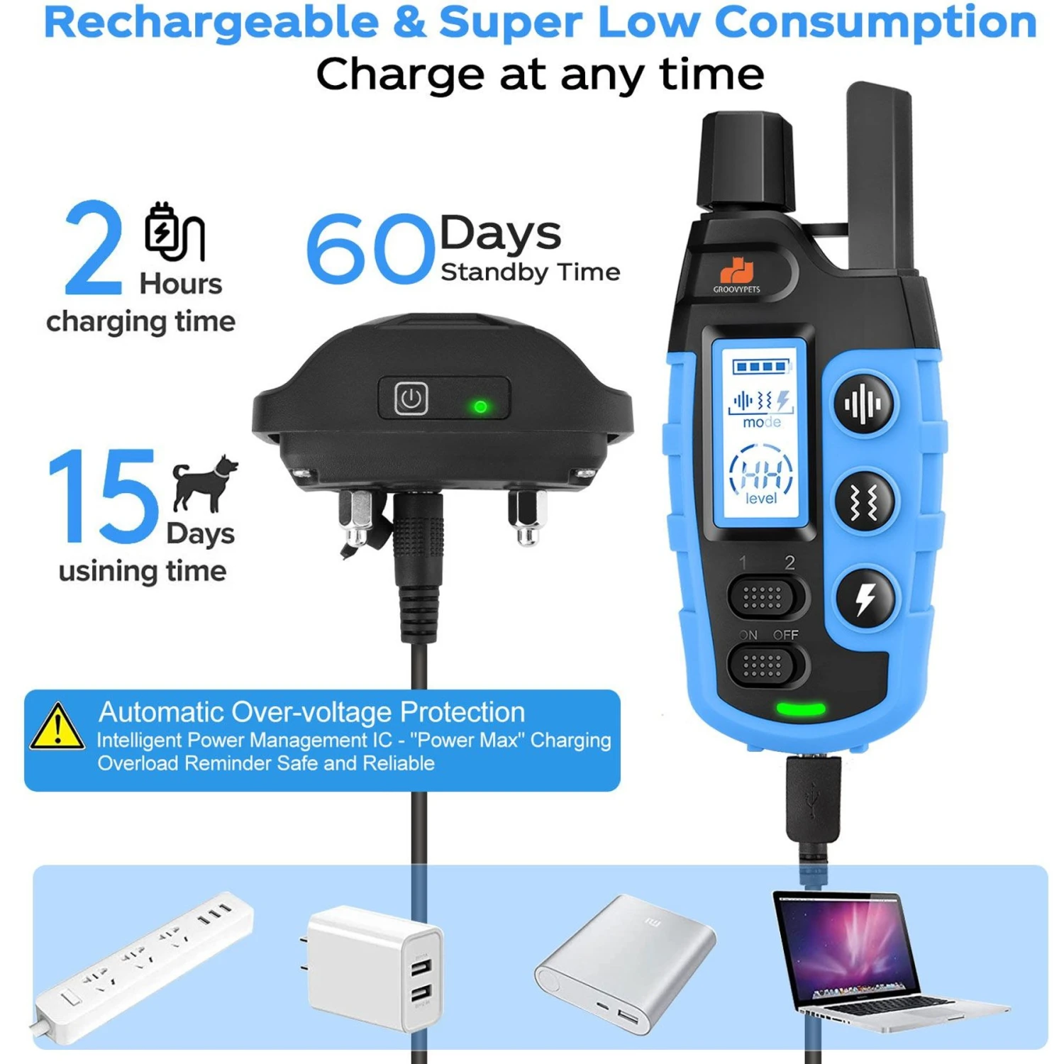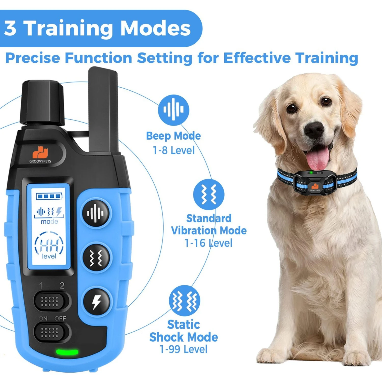 GroovyPets 1100 Yard Remote Dog Training Shock Collar, Black
