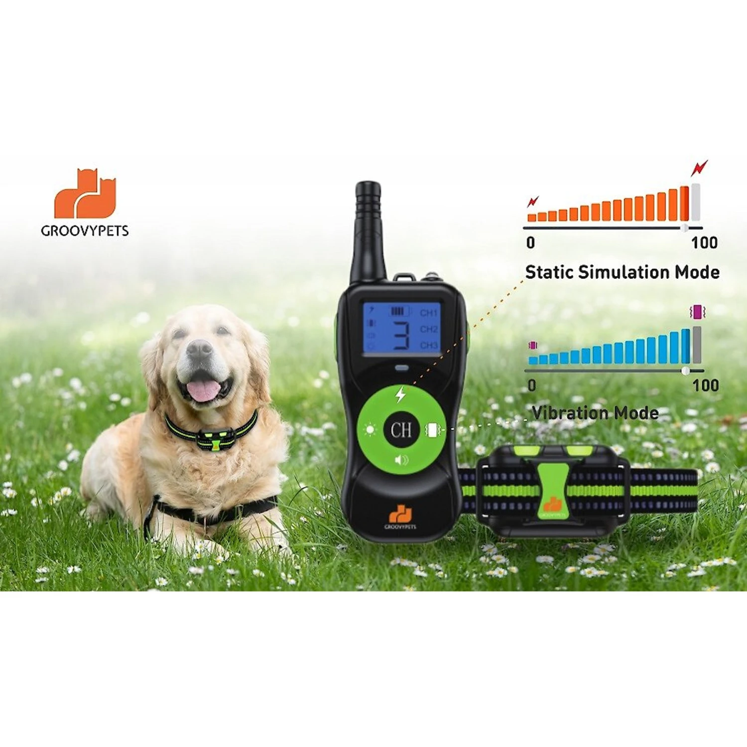 GroovyPets Two-Dog Kit 800 Yard Waterproof Long-Life Rechargable Remote Dog Training Shock Collar System