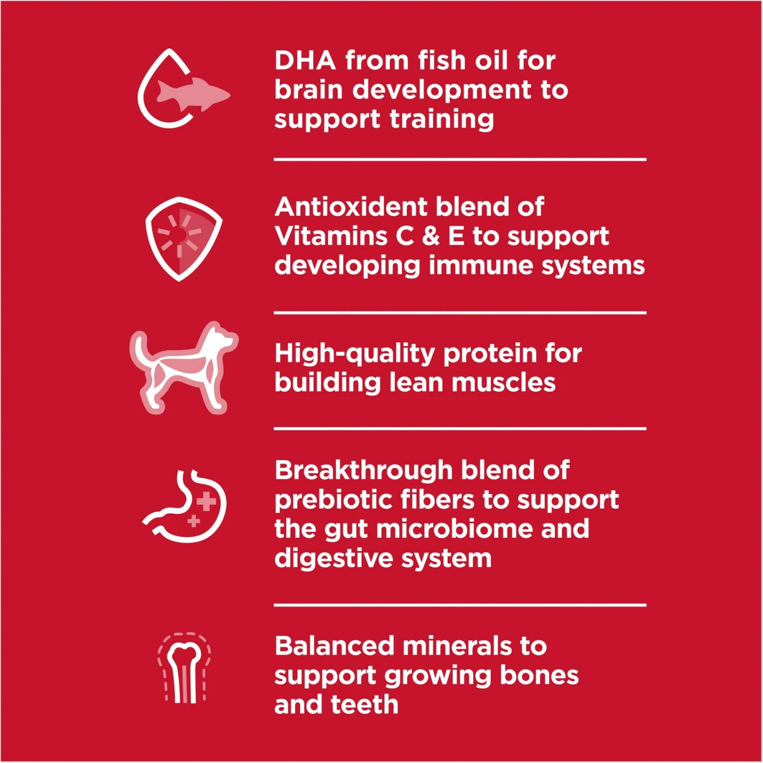 - DHA from fish oil supports healthy brain and eye development for growing pups.