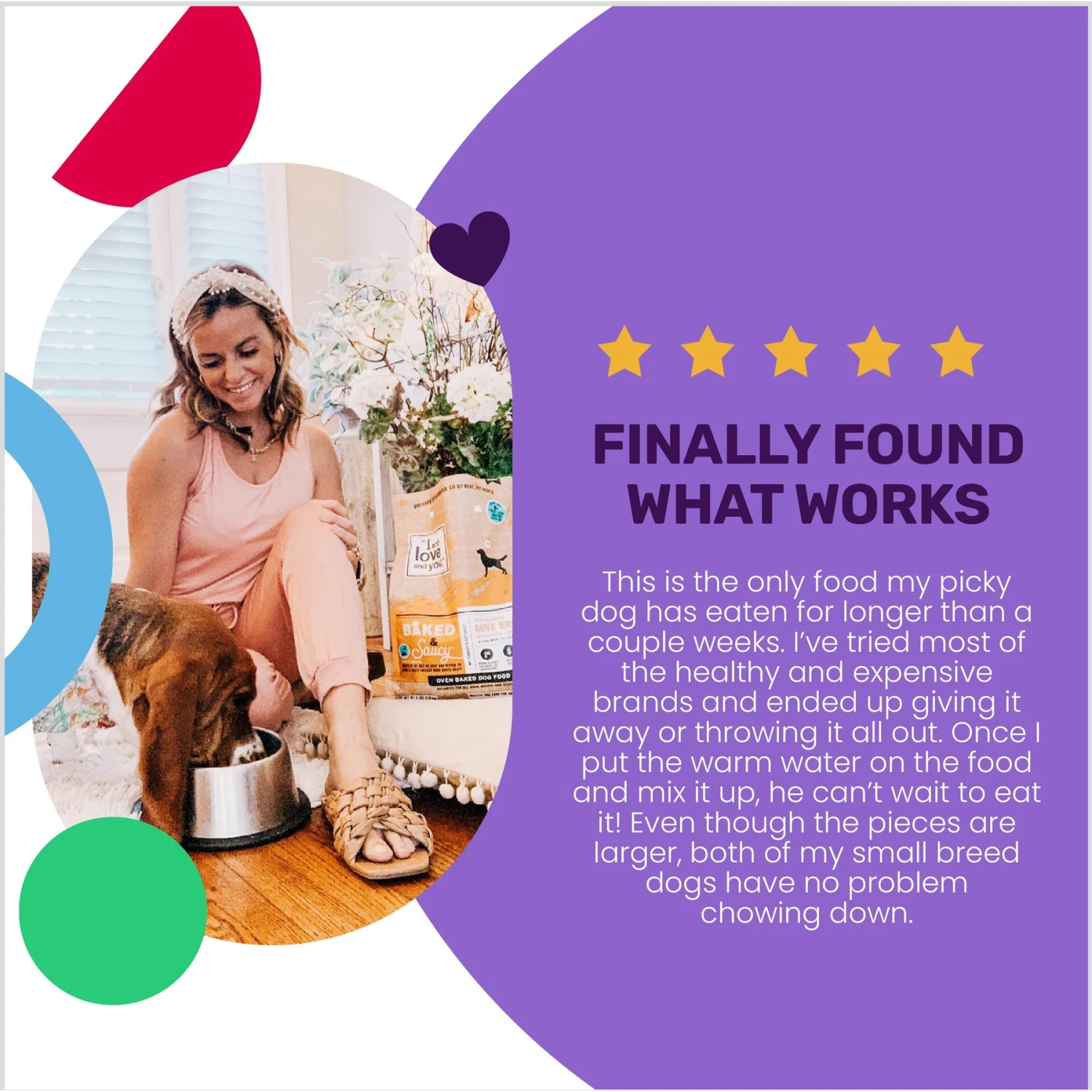 - Serve wet or dry! Give your guy a crunchy bowl of oven-baked kibble or add a splash of water for an instant, savory bone broth gravy.