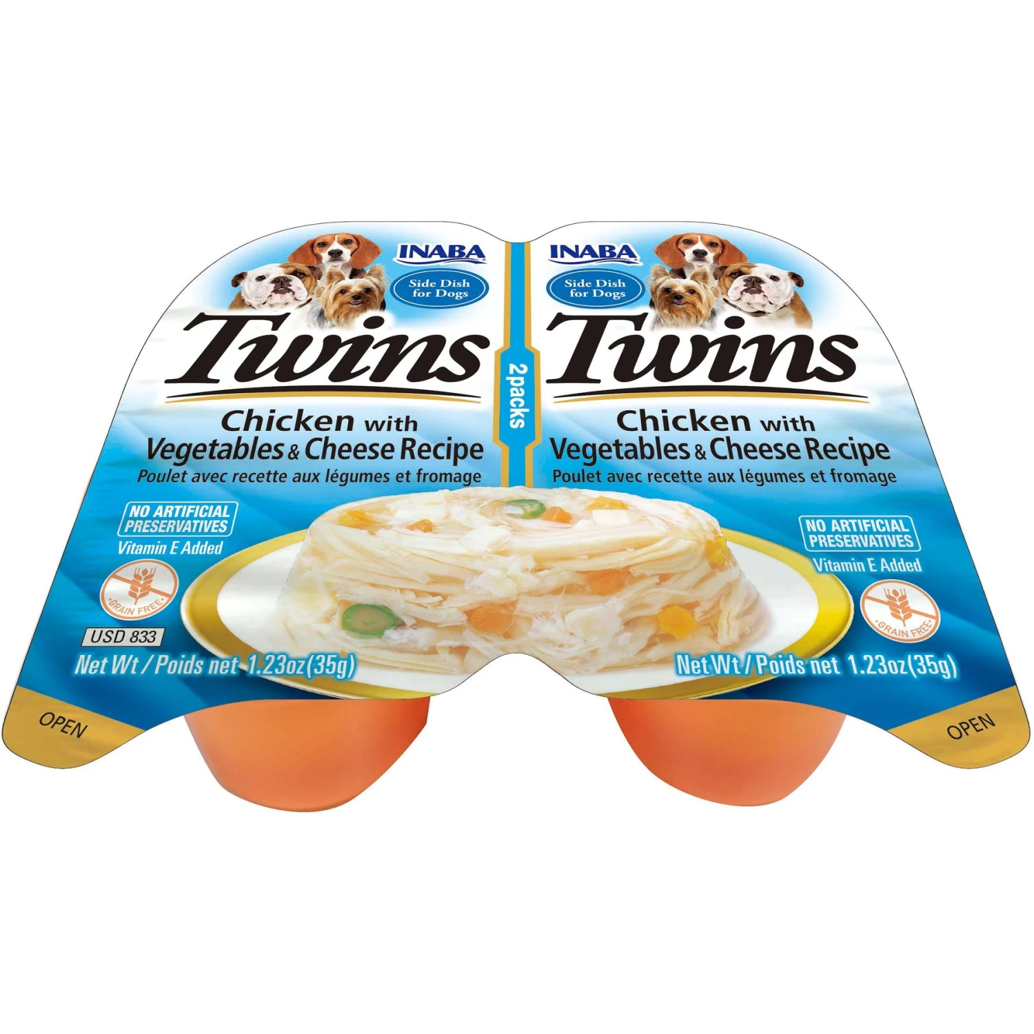 Inaba Twins Chicken With Vegetables & Cheese Recipe Grain-Free Dog Food Topper, 1.23-oz, Pack Of 2