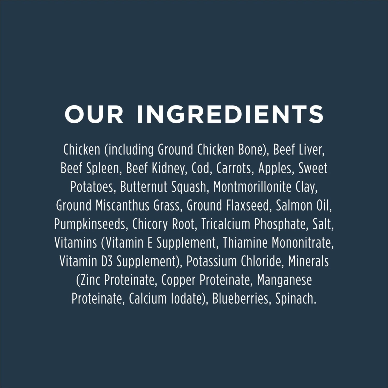- Full of protein from chicken, beef organs and cod to promote healthy muscle development.