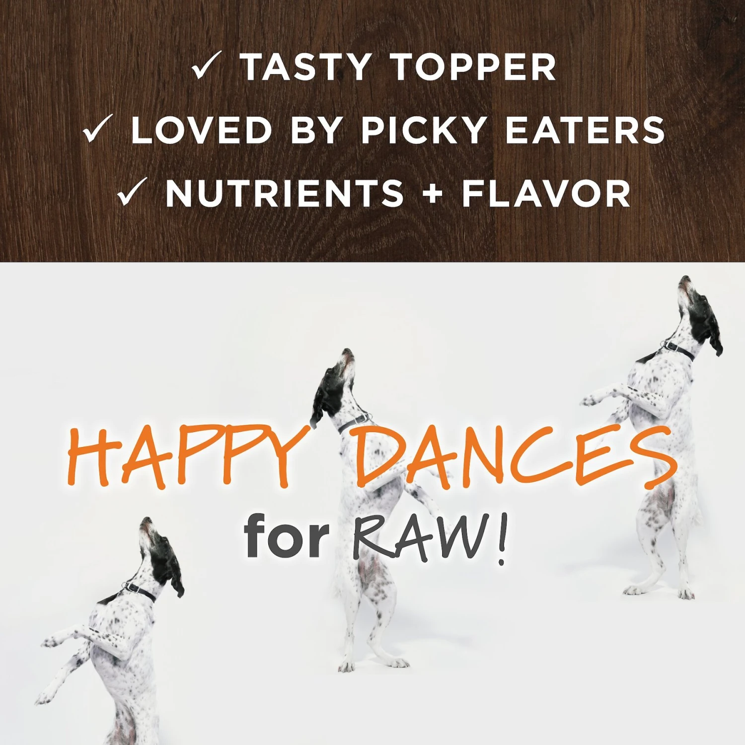- Features raw ingredients for a healthy food topper.