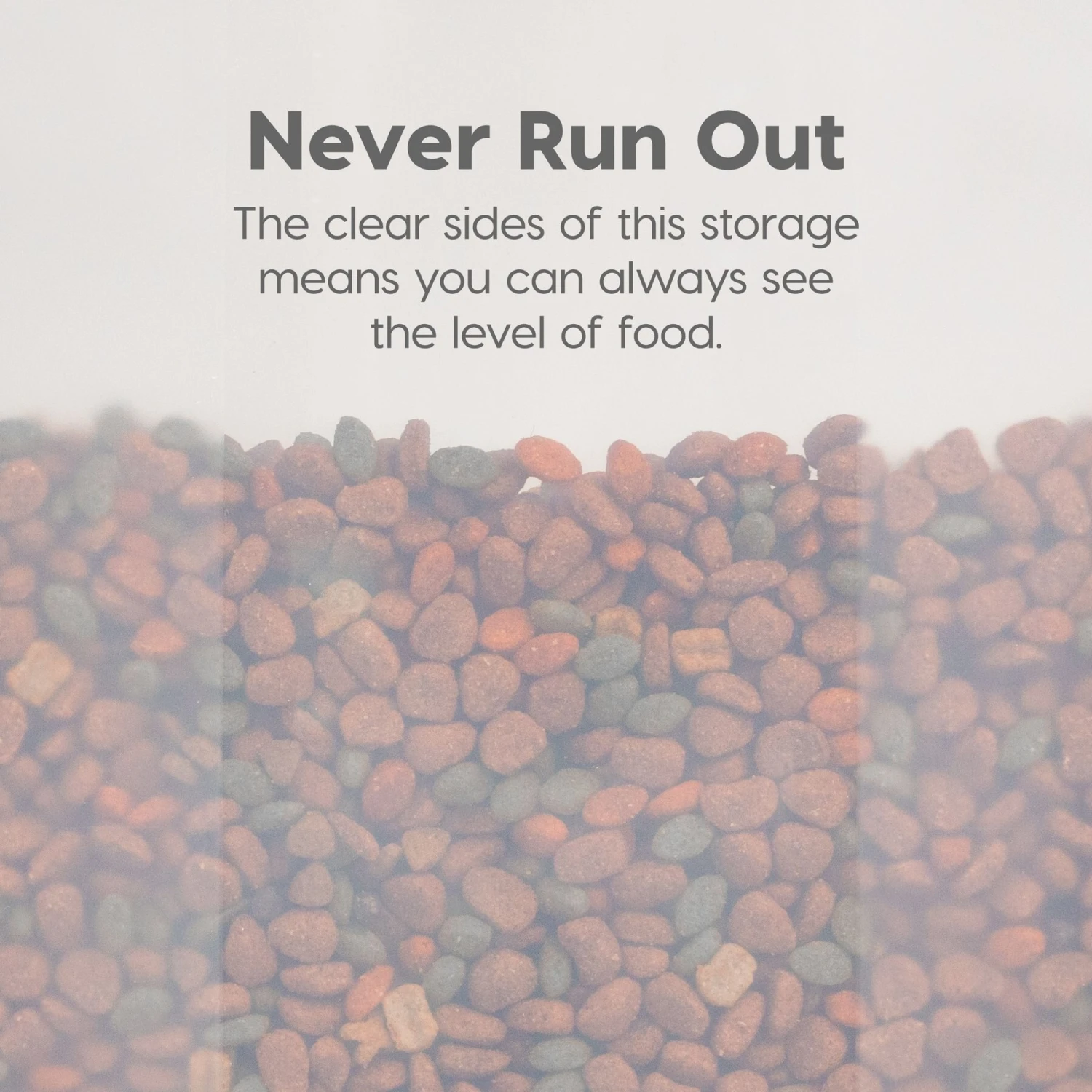 - Crafted with a translucent body, allowing you to easily check the pet food level with just a glance, it’s tapered from top to bottom and easy to clean.