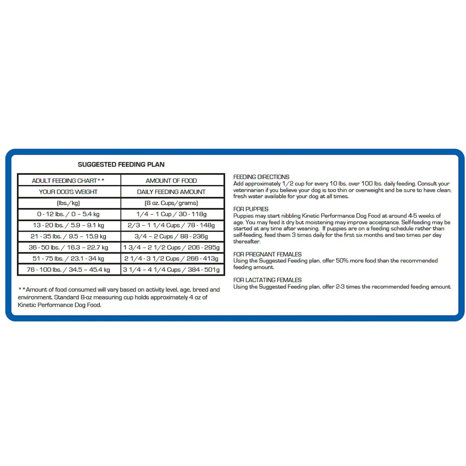 - A 28% protein, 15% fat kibble that’s specifically formulated for medium to large breed puppies, and pregnant or lactating females. It’s fortified with vitamins and trace minerals making it 100% complete