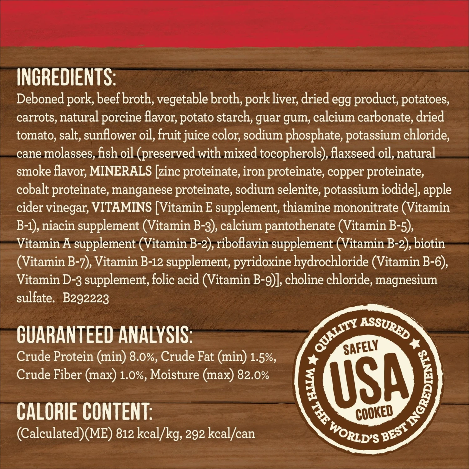 - Real, deboned pork is the first ingredient in this premium soft food—the high protein levels help adult dogs maintain lean muscles and healthy energy levels.