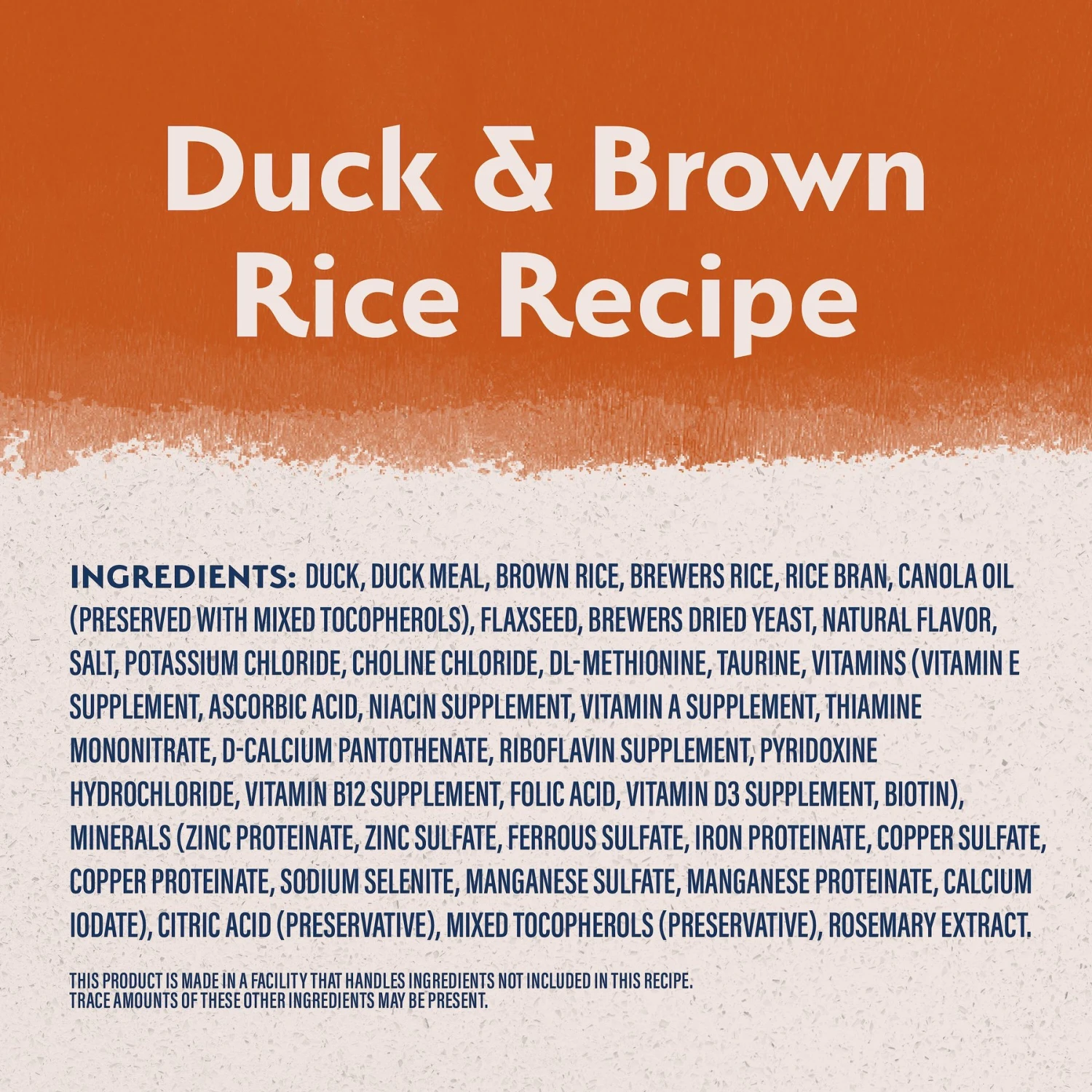 | Flavor | Lamb & Brown Rice, Beef & Brown Rice, Chicken & Brown Rice, Duck & Brown Rice, Salmon & Brown Rice |