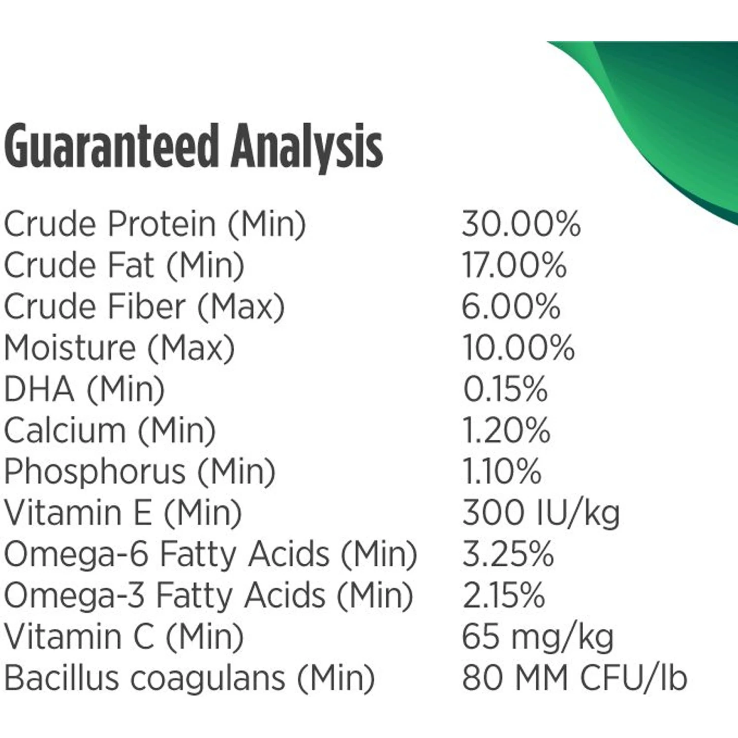 - Omega-3 and Omega-6 fatty acids support lustrous skin and coat.