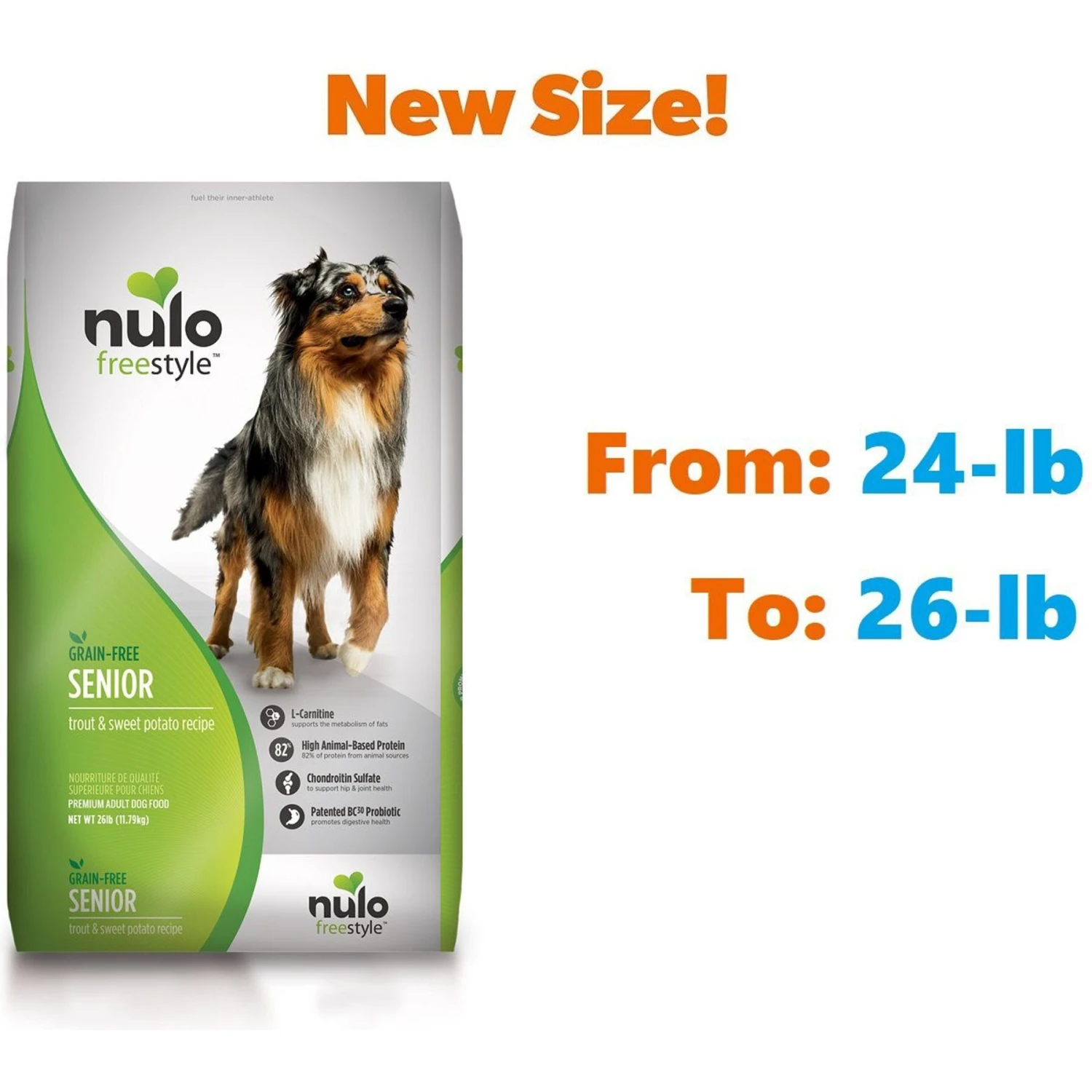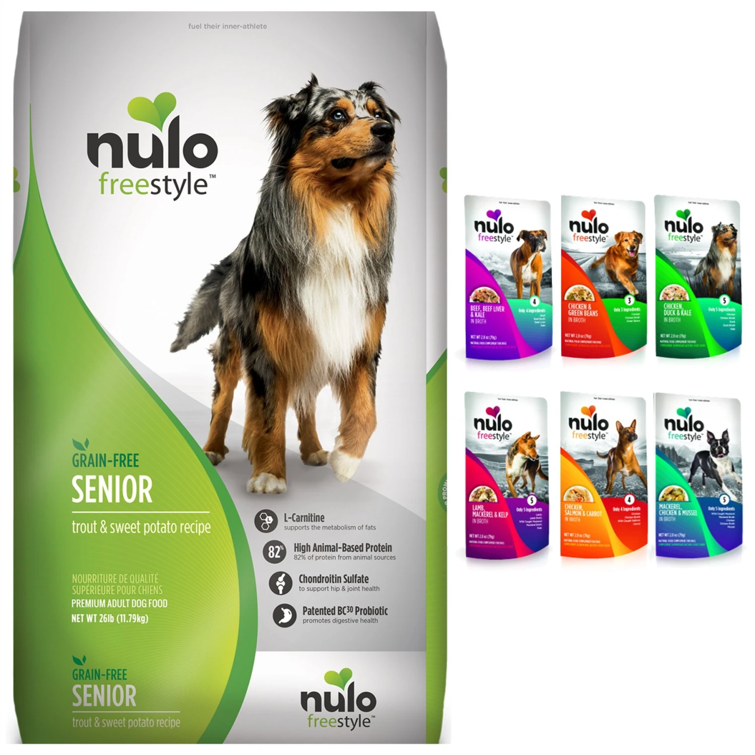 Nulo Freestyle Senior Grain-Free Trout & Sweet Potato Recipe Dry Dog Food & Nulo FreeStyle Variety Pack Dog Food Topper