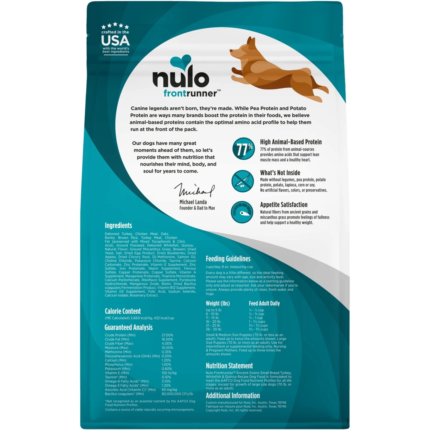 Nulo Frontrunner Ancient Grains Turkey, Whitefish & Quinoa Small Breed Dry Dog Food