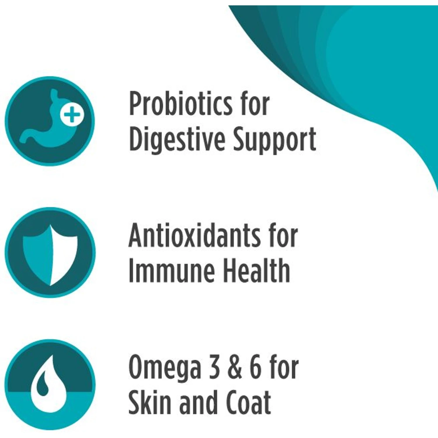 - 77% animal-based protein provides amino acids that support lean muscle mass and a healthy heart in your small dog.