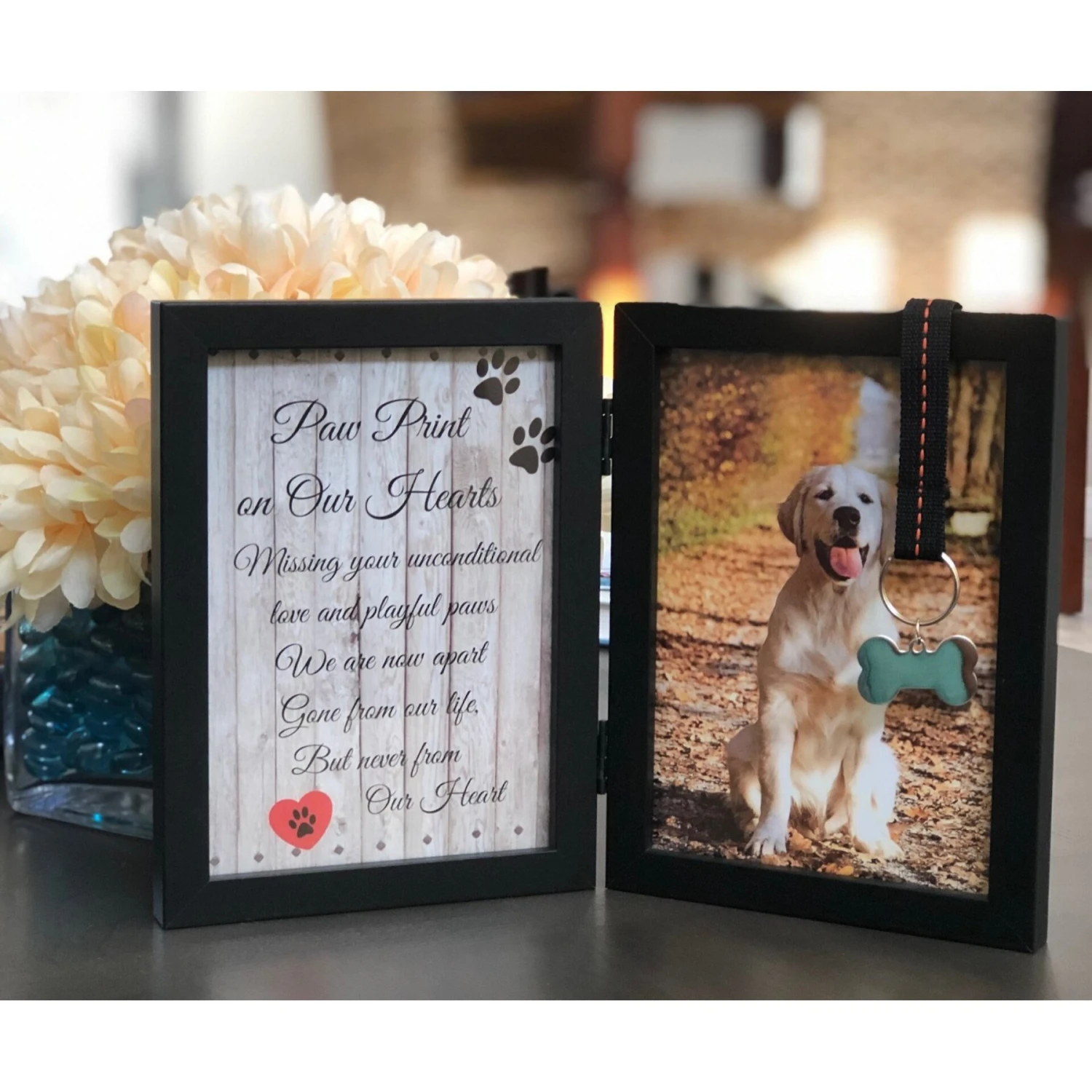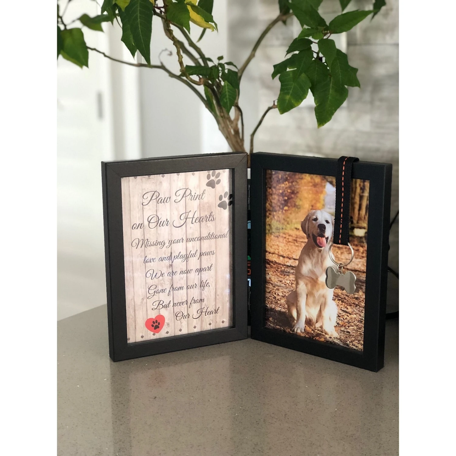 - The thoughtful, foldable memorial frame has a space for a photo of your pet.