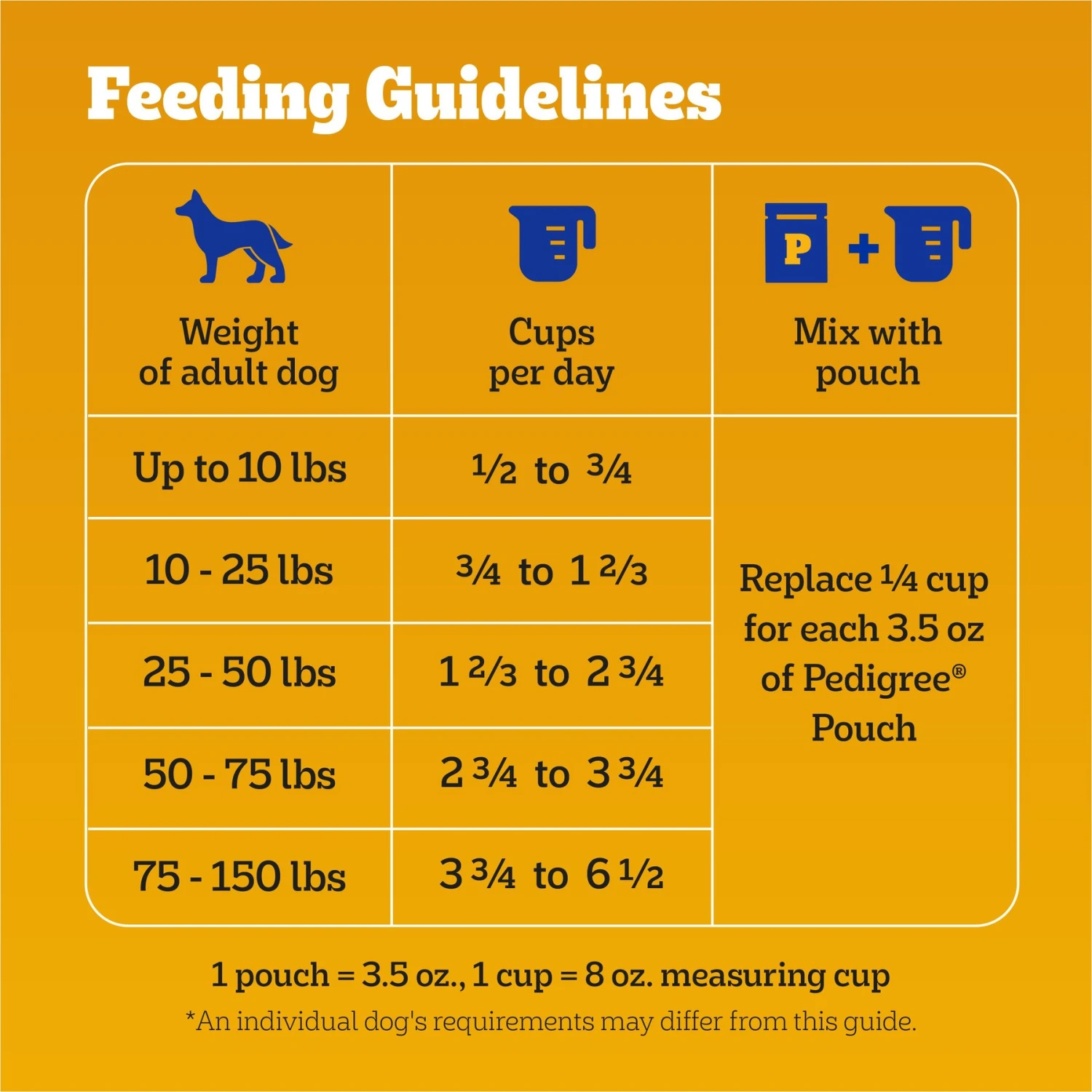 - Made with a high-quality protein sourced from real chicken and contains 25% more protein than Pedigree’s Adult Complete Nutrition.