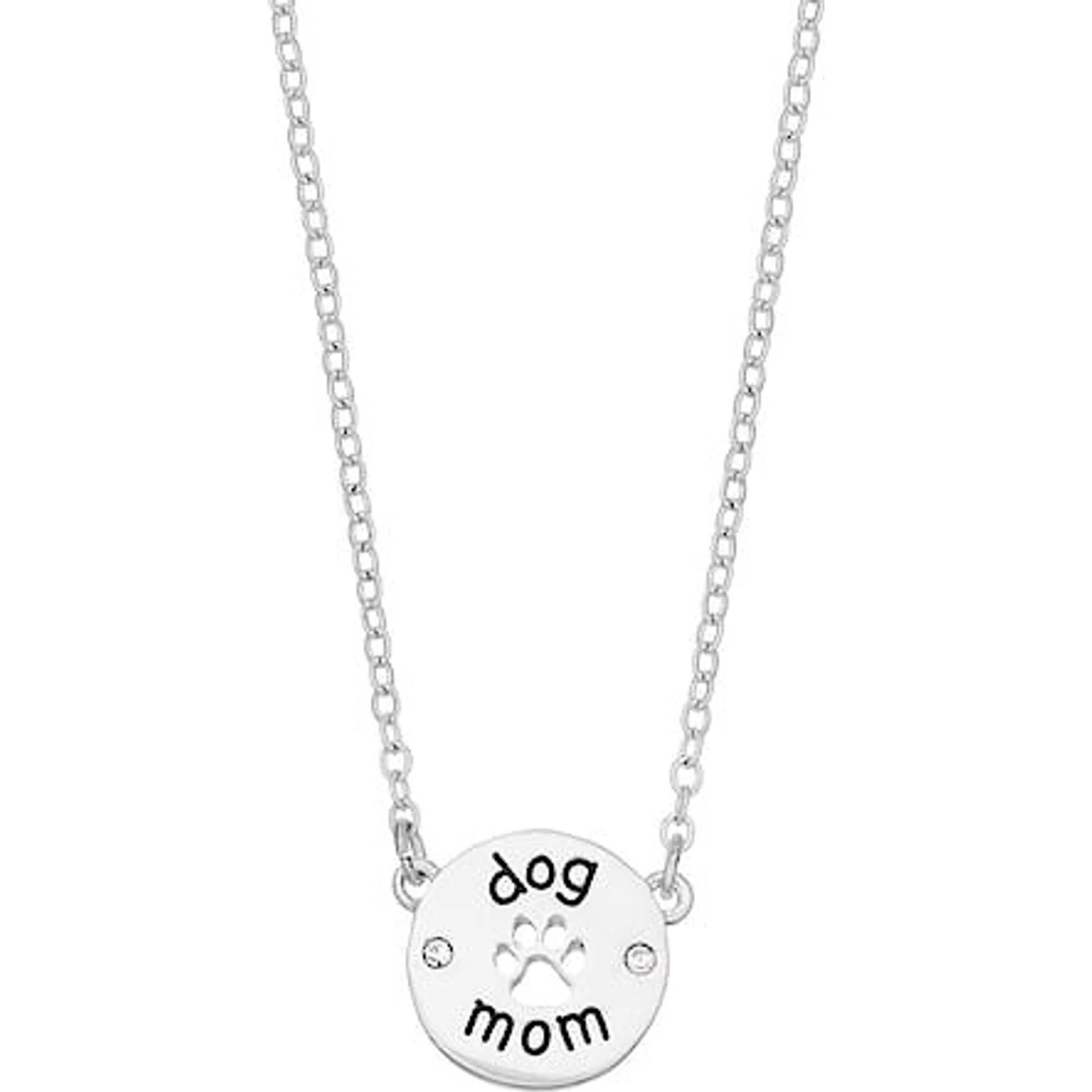 - Fashionable “Dog Mom” necklace is made with polished silvertone.