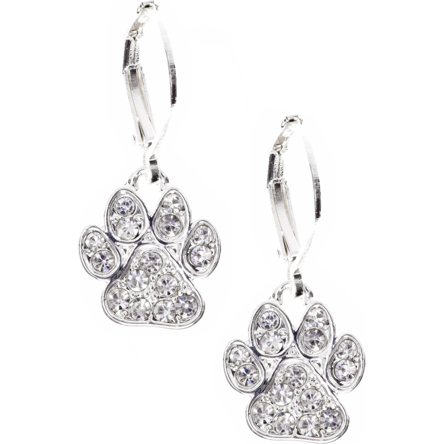 - Adorable paw shaped earrings with polished diamond-like crystal pavestone accents.