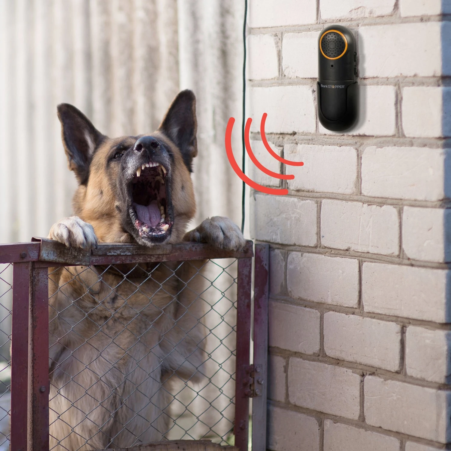 - Device emits a high-pitched pulse inaudible to the human ear but irritating to dogs.
