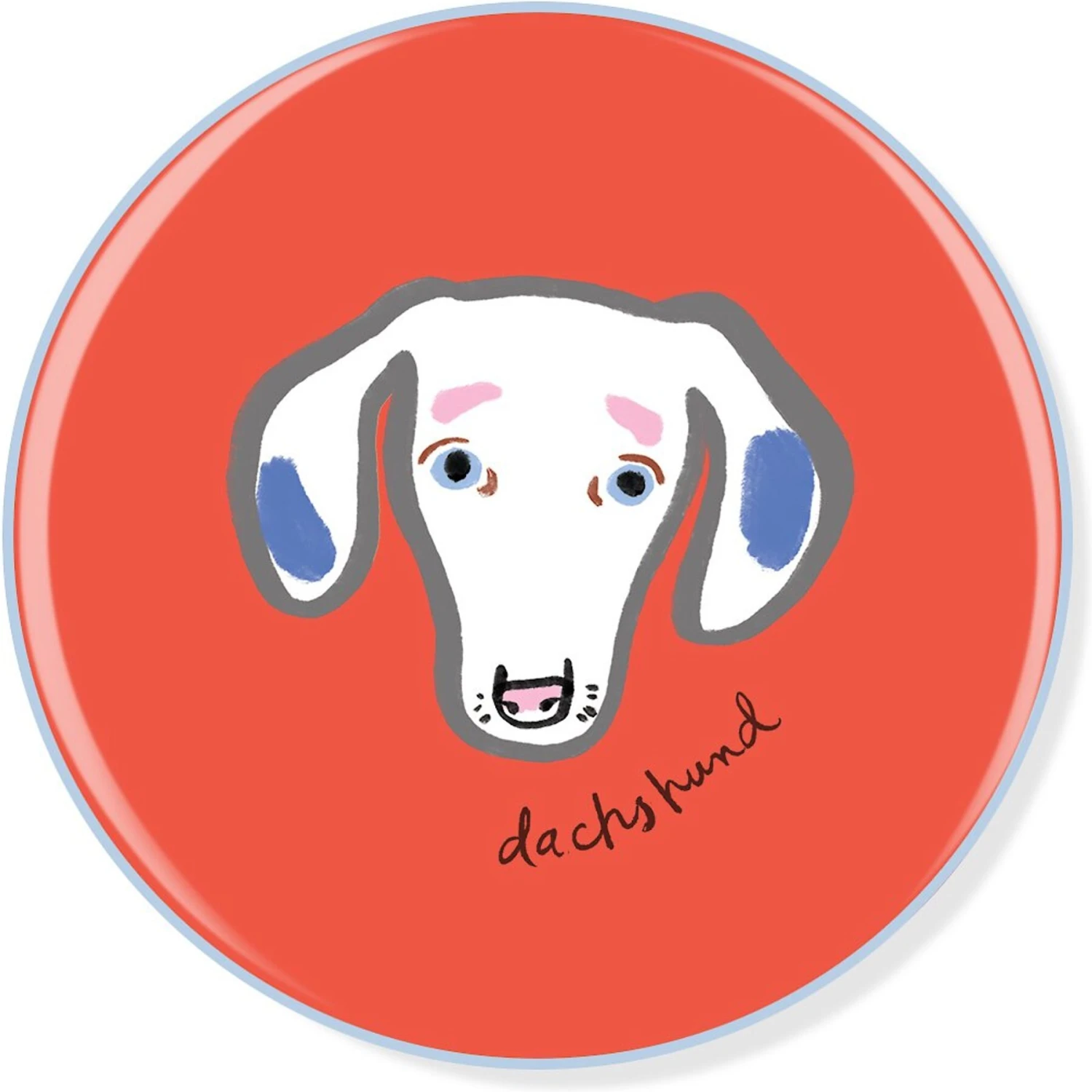 - Show off your favorite breed with a coaster that reads “DACHSHUND”.
