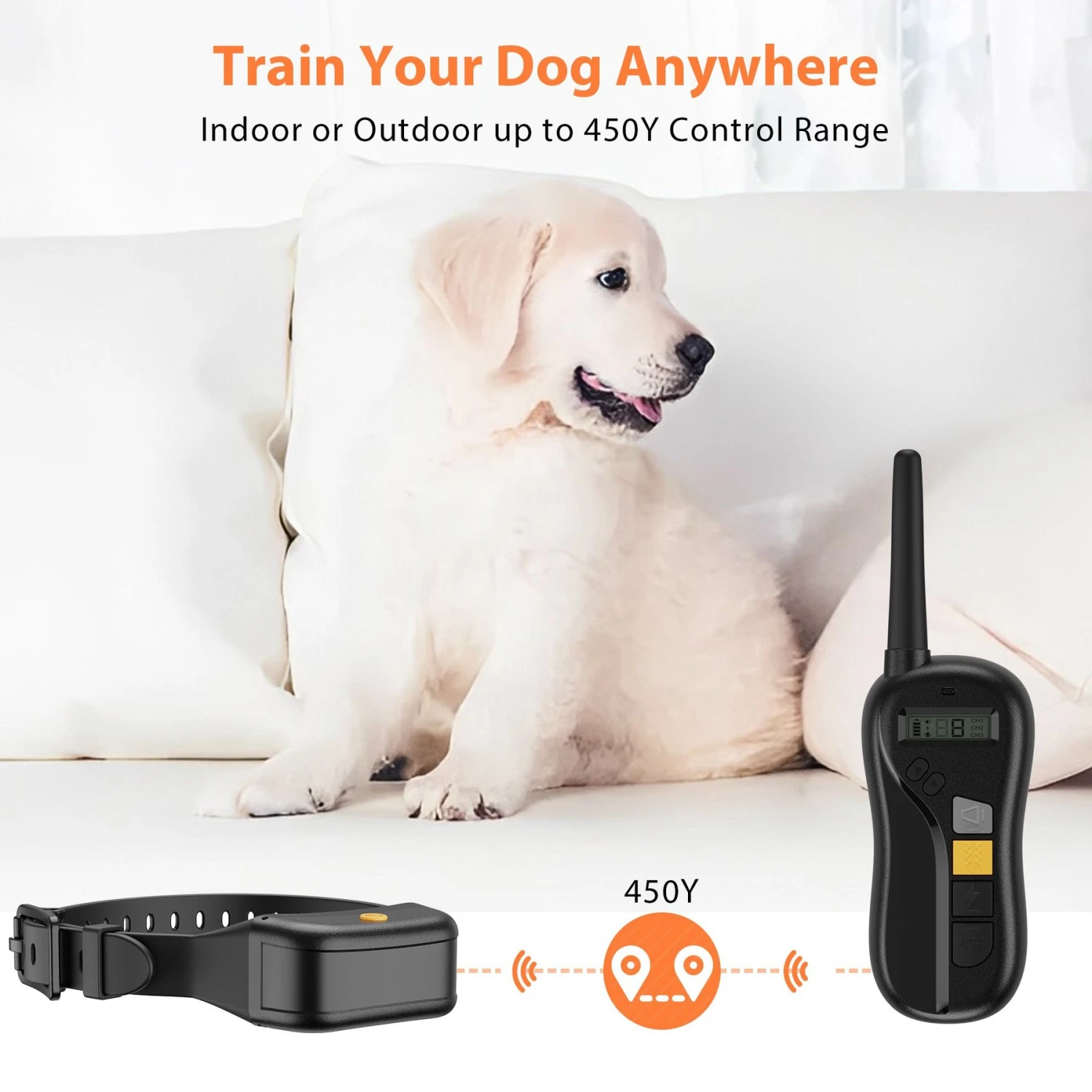 - Choose between three humane training modes – static shock, vibration and beeping.