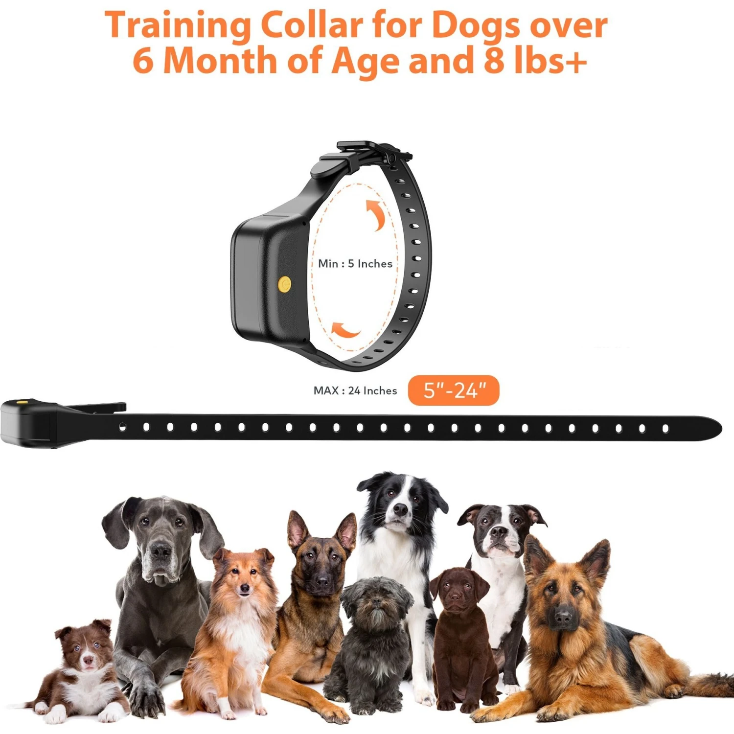 | Collar Type | Remote Training – Noise, Bark Control – Vibration, Bark Control – Static |