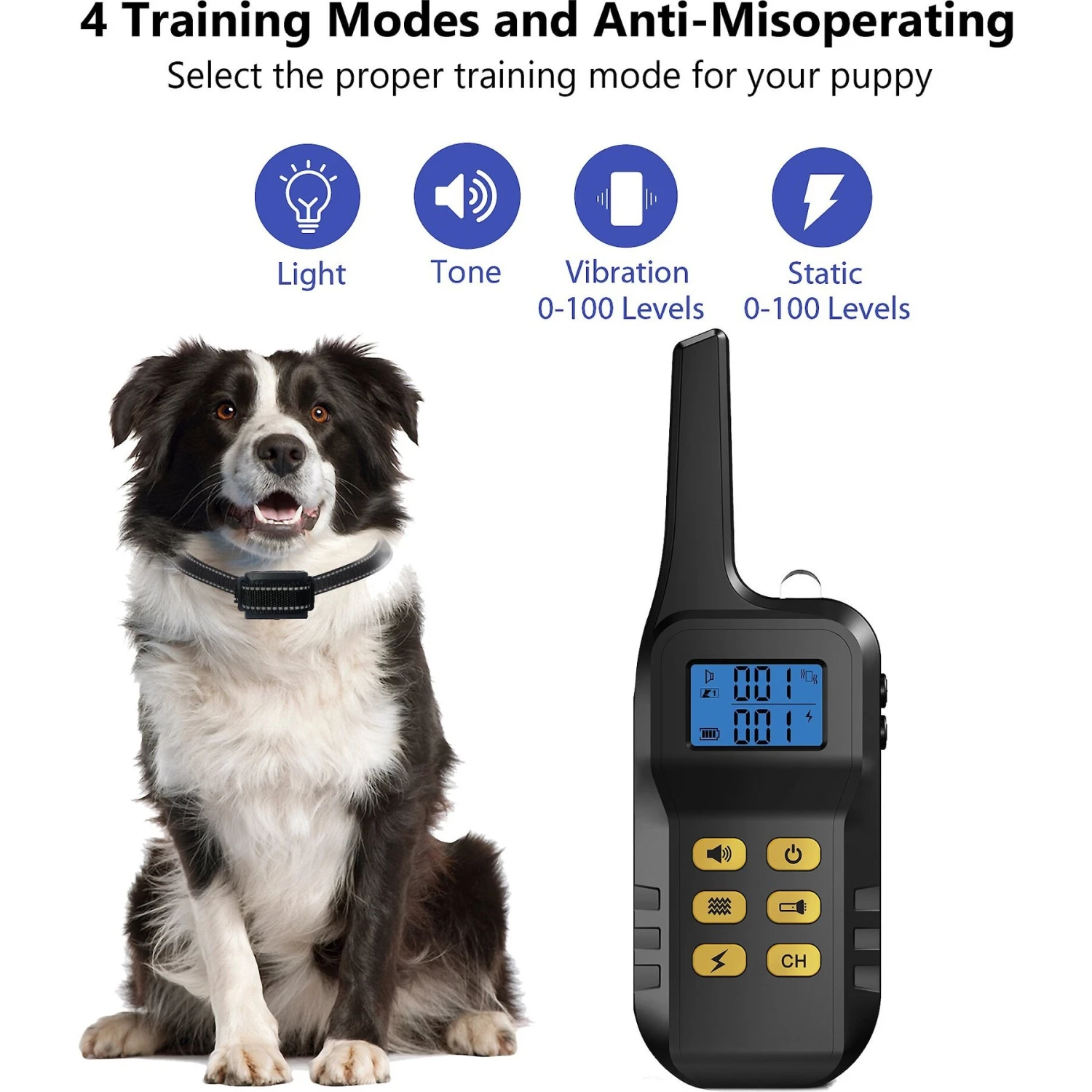 - With 4 different modes—sound, vibration, shock, and LED—you can customize your dog’s training experience.