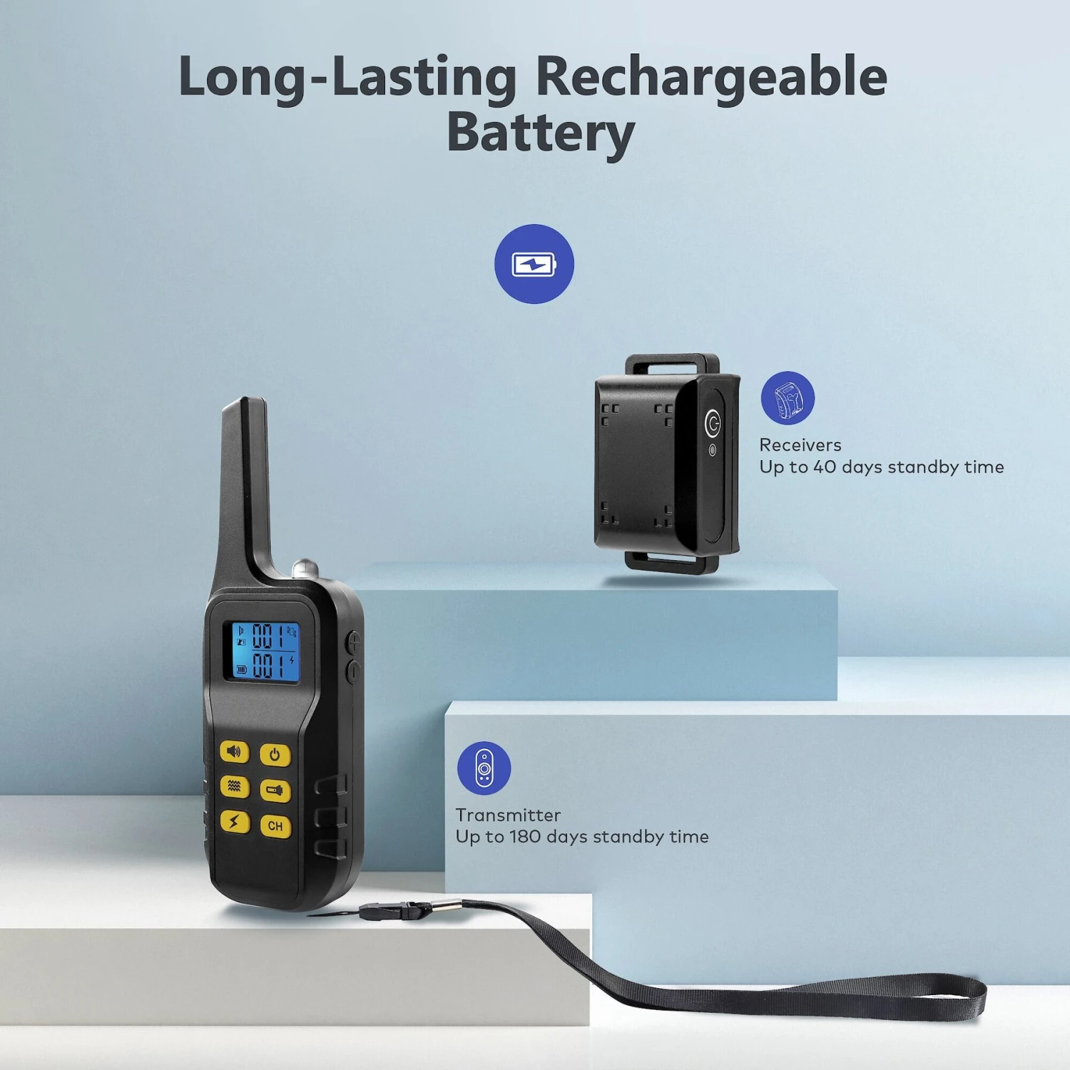 - A full charge of both the collar and the transmitter lasts 180 days and 40 days respectively.