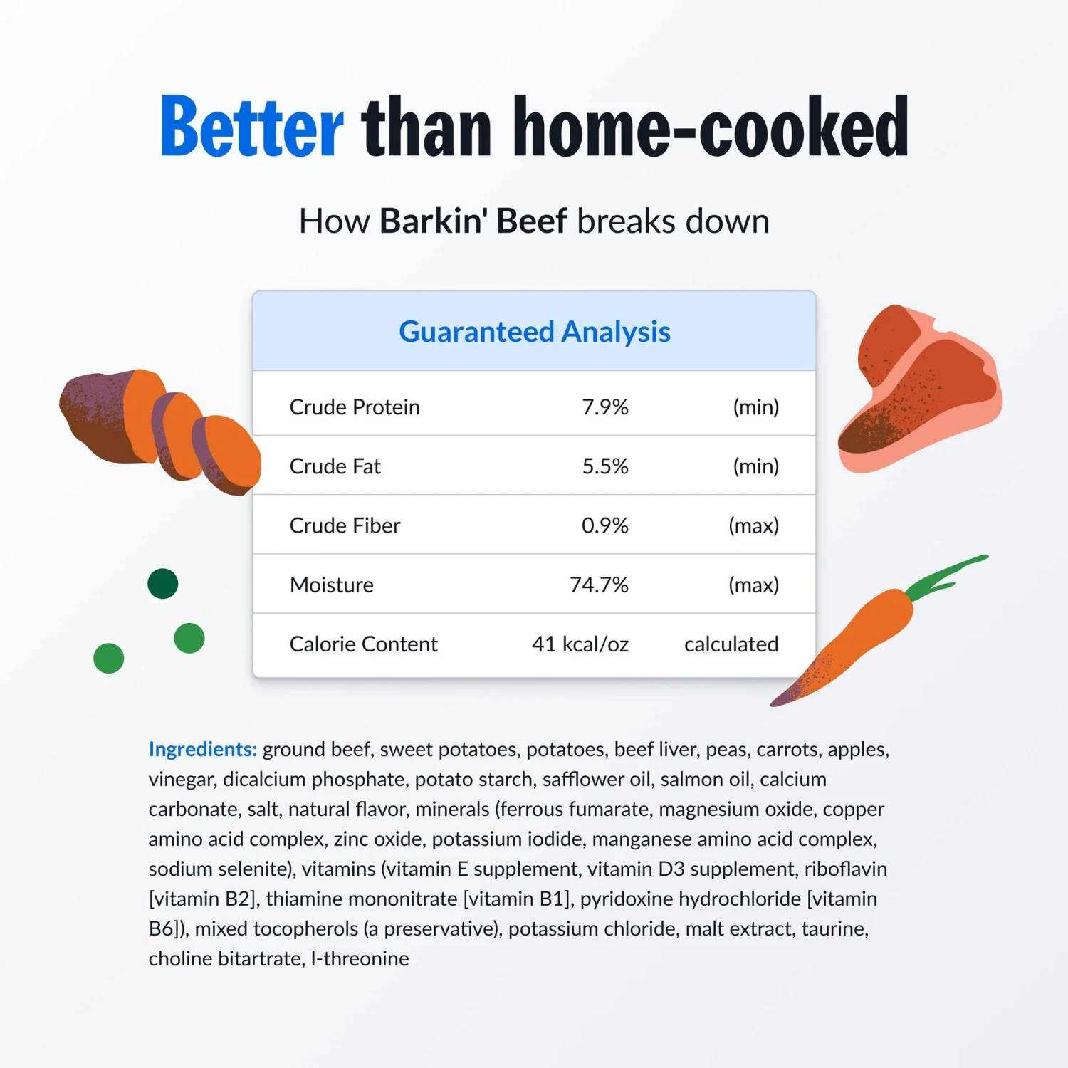 PetPlate Human Grade Barkin’ Beef Entree Dog Food