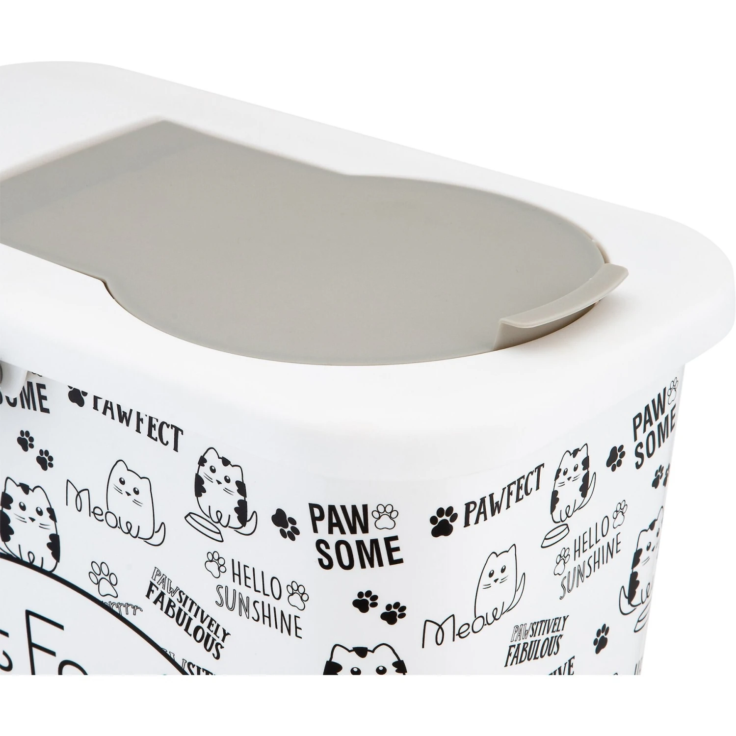 Store your furry family member’s food in style with the Pounce & Fetch Dry Dog & Cat Food Storage Container. This food storage container has a fun paw print design to add some flair to your kitchen while helping to keep your pet’s food fur-esh. It features a large, clip in lid and a handle to help you easily carry this container. It also comes with a scoop for dishing out your furbaby’s meals. This container is paw-fect for holding dry food for canine companions, feline friends and even birds.