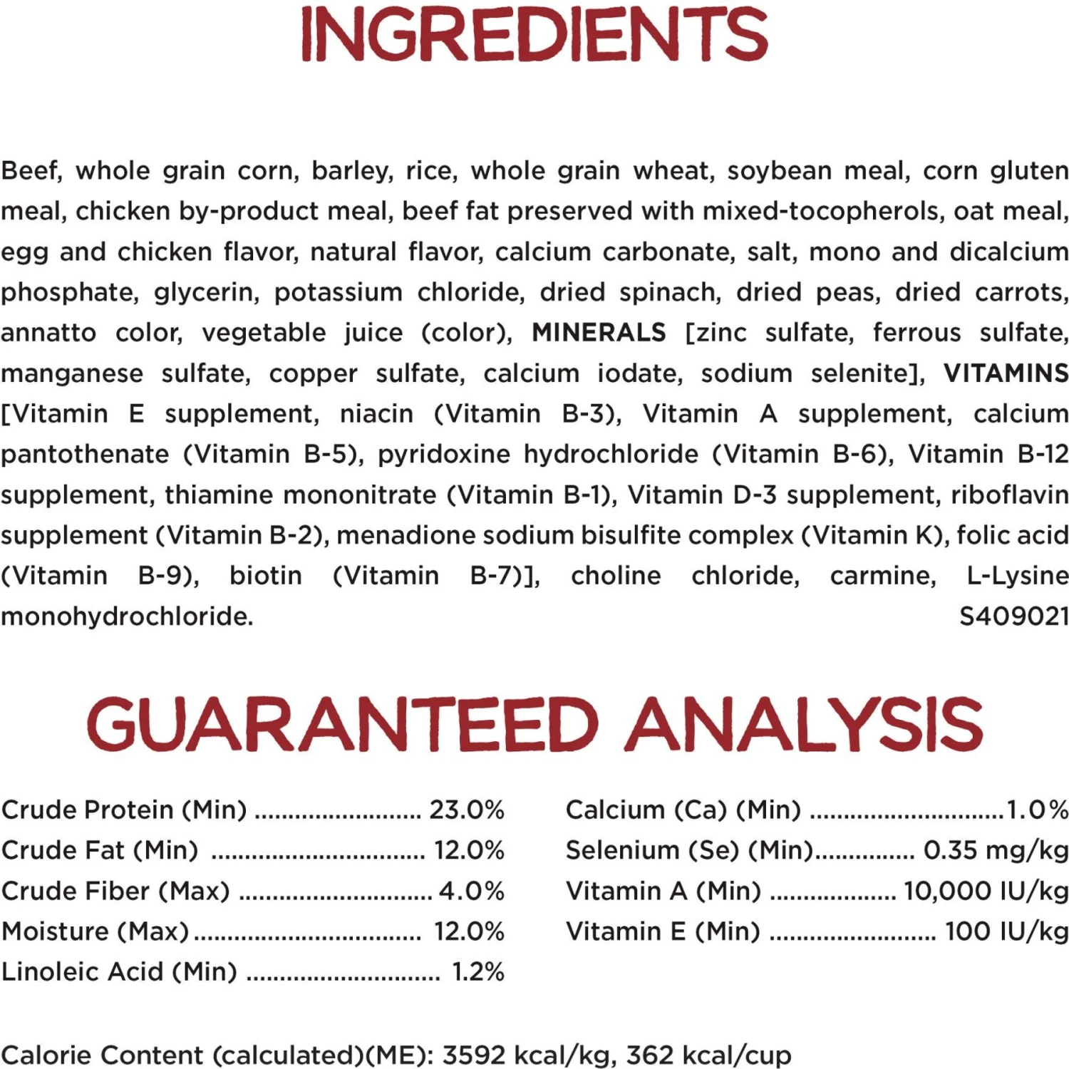 - Features farm-raised beef as the number one ingredient and this naturally delicious premium food is made with added vitamins, minerals and nutrients.