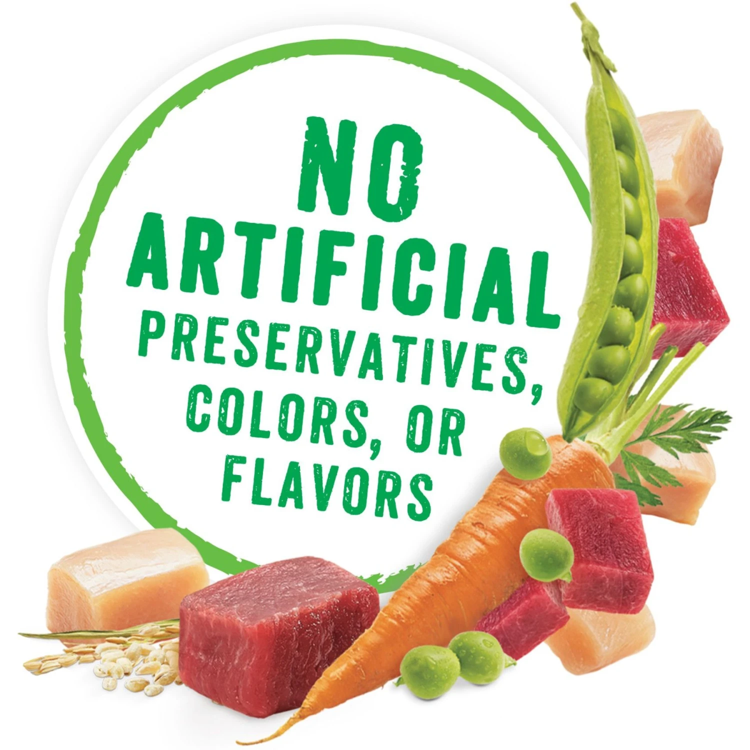 - All three hearty dog stews offer tender, meaty chunks with real beef, chicken or lamb, plus with real veggies and grains you can see!