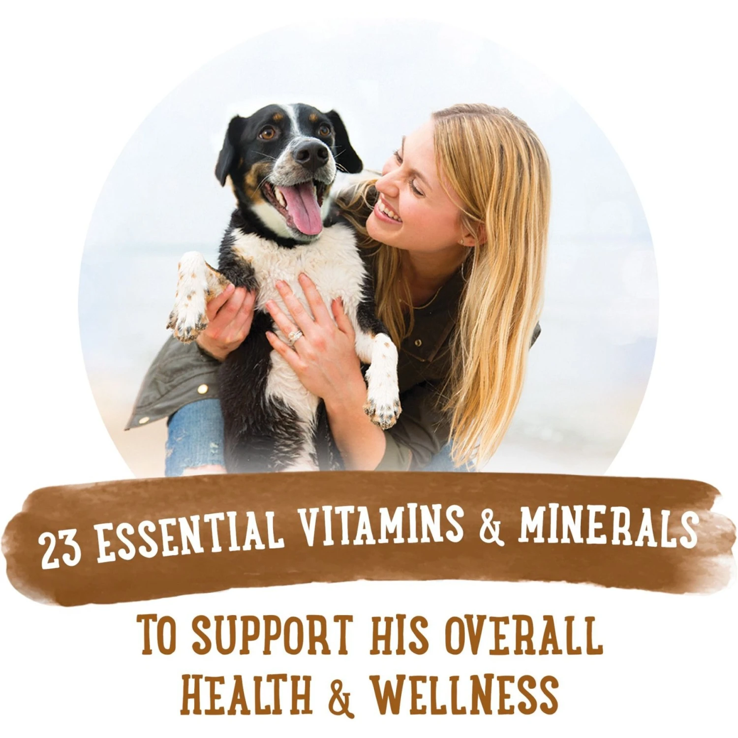 - With 23 essential vitamins and minerals, Beneful wet dog food delivers 100 percent complete and balanced nutrition for the nose-to-tail well-being of adult dogs.
