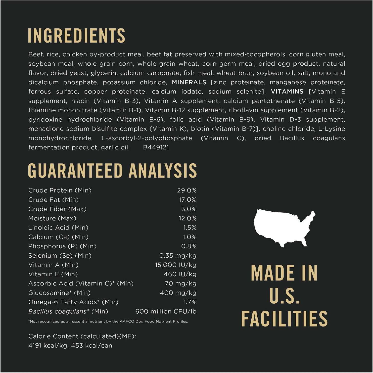 - Real beef is #1 ingredient in this high-protein dry dog food to meet the needs of highly active small dogs like yours and fuel all your little guy’s big adventures.