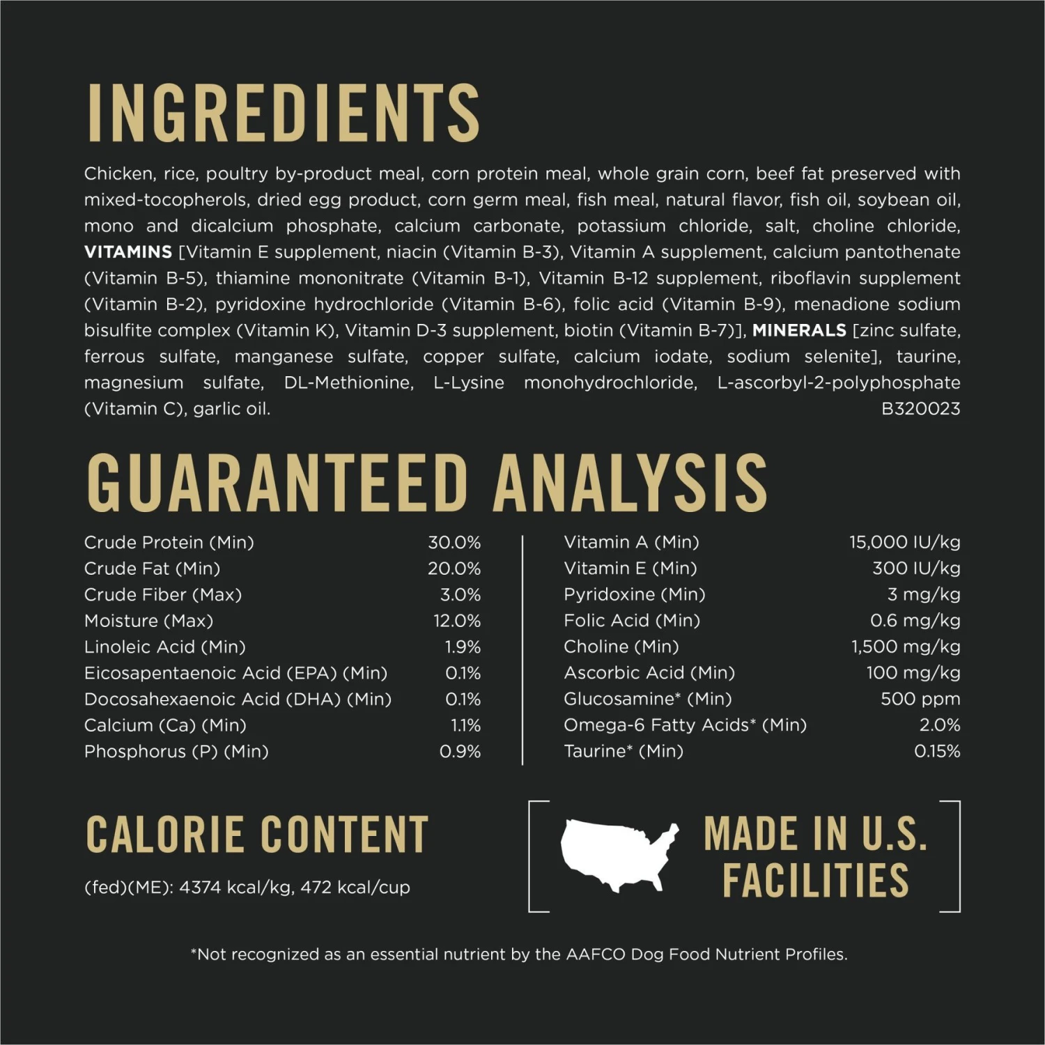 - Created with 30% protein and 20% fat to support a healthy growth rate and age-appropriate strength and endurance in your active puppy.