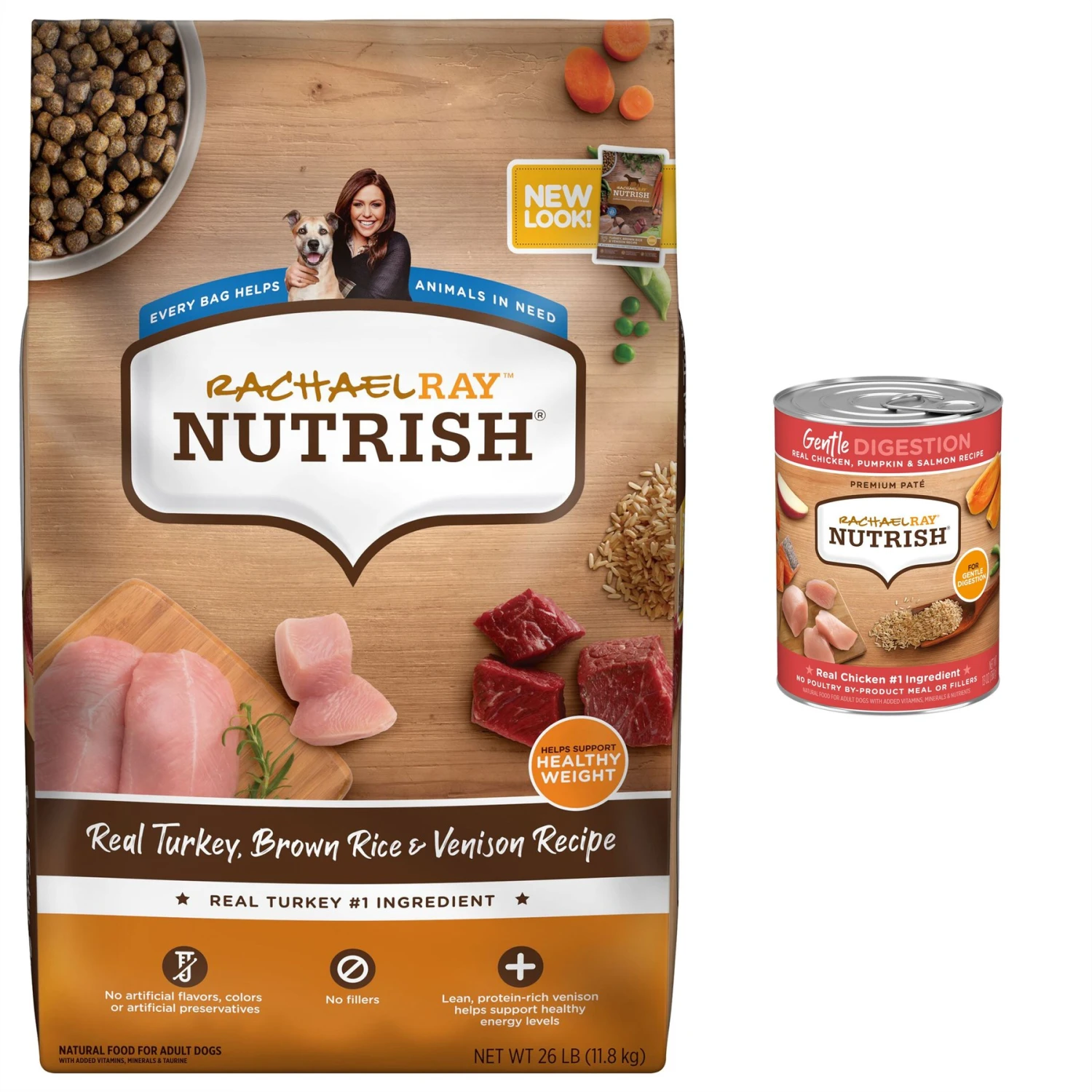 Rachael Ray Nutrish Real Turkey, Brown Rice & Venison Recipe Dry Dog Food, 26-lb bag—Make your mini mate’s day with Rachael Ray Nutrish Real Turkey, Brown Rice & Venison Recipe Dry Dog Food. This simple and natural food for dogs features farm-raised turkey as the number one ingredient—combined with protein-packed venison and wholesome brown rice. It is crafted to be a complete and balanced diet that you can count on to deliver much needed nutrition to your canine companion. This high-quality dog food is formulated with L-carnitine, an amino acid that helps support a healthy metabolism and ideal weight. Vitamins, minerals and taurine are also added to help keep your furry buddy living his best life!