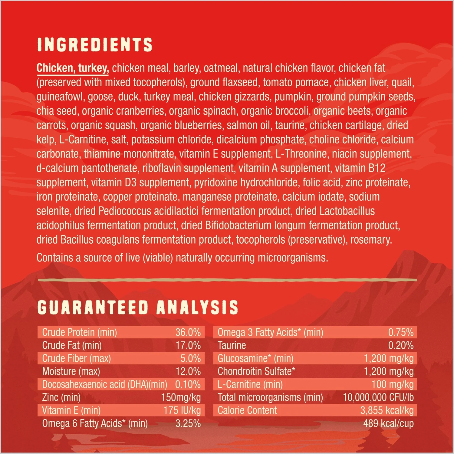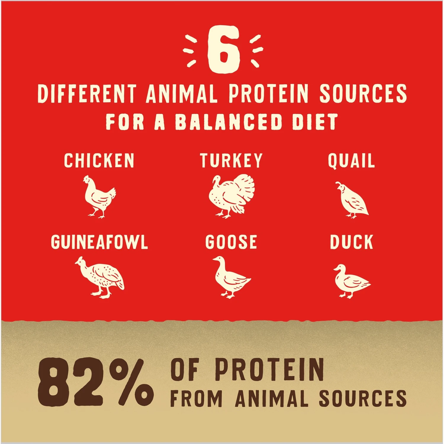 - Made in the USA with real meat from 6 responsibly sourced animal proteins—chicken, turkey, quail, guineafowl, goose and duck. It also contains organic fruits and veggies!