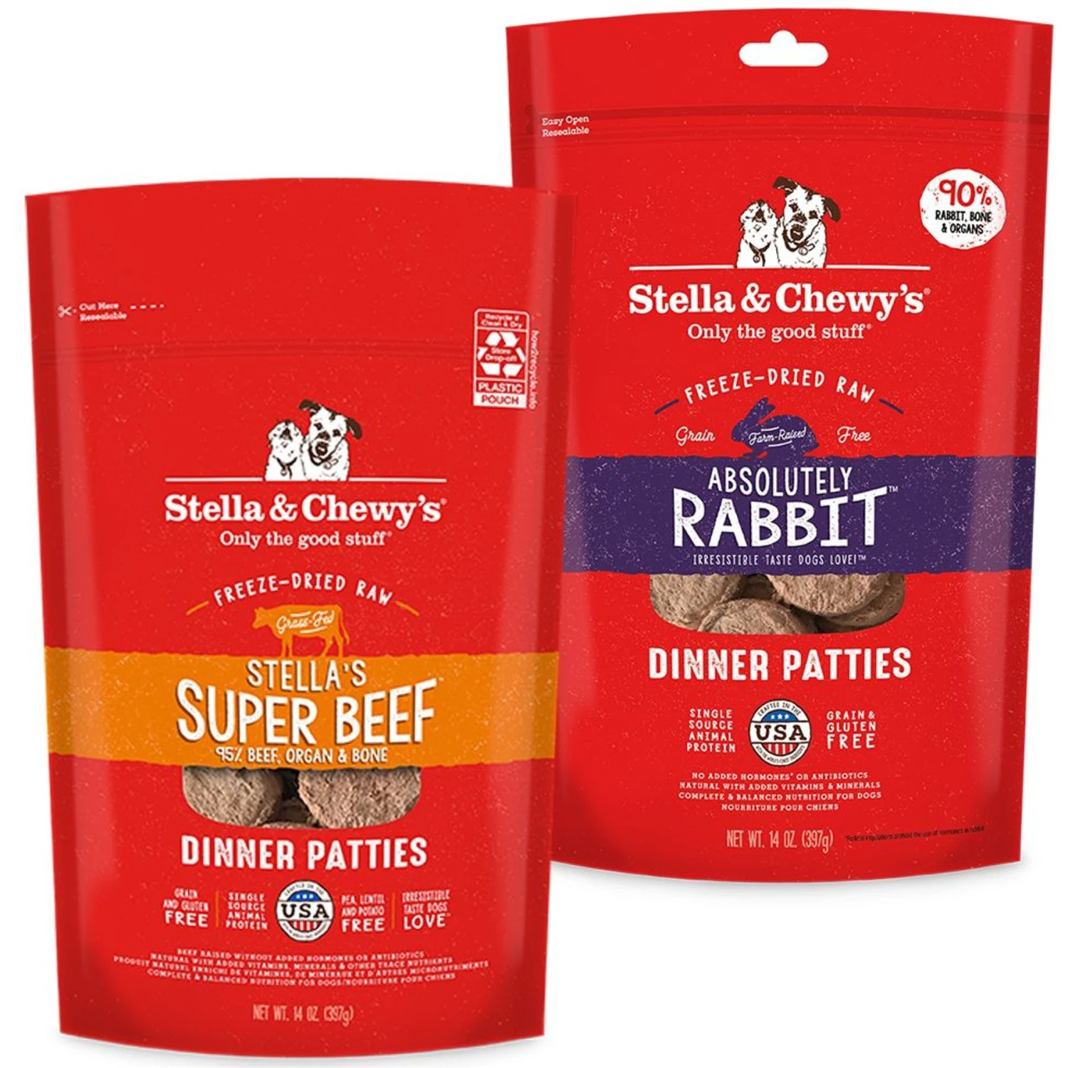 Stella & Chewy’s Stella’s Super Beef Dinner Patties Freeze-Dried Raw Dog Food & Stella & Chewy’s Absolutely Rabbit Dinner Patties Freeze-Dried Raw Dog Food