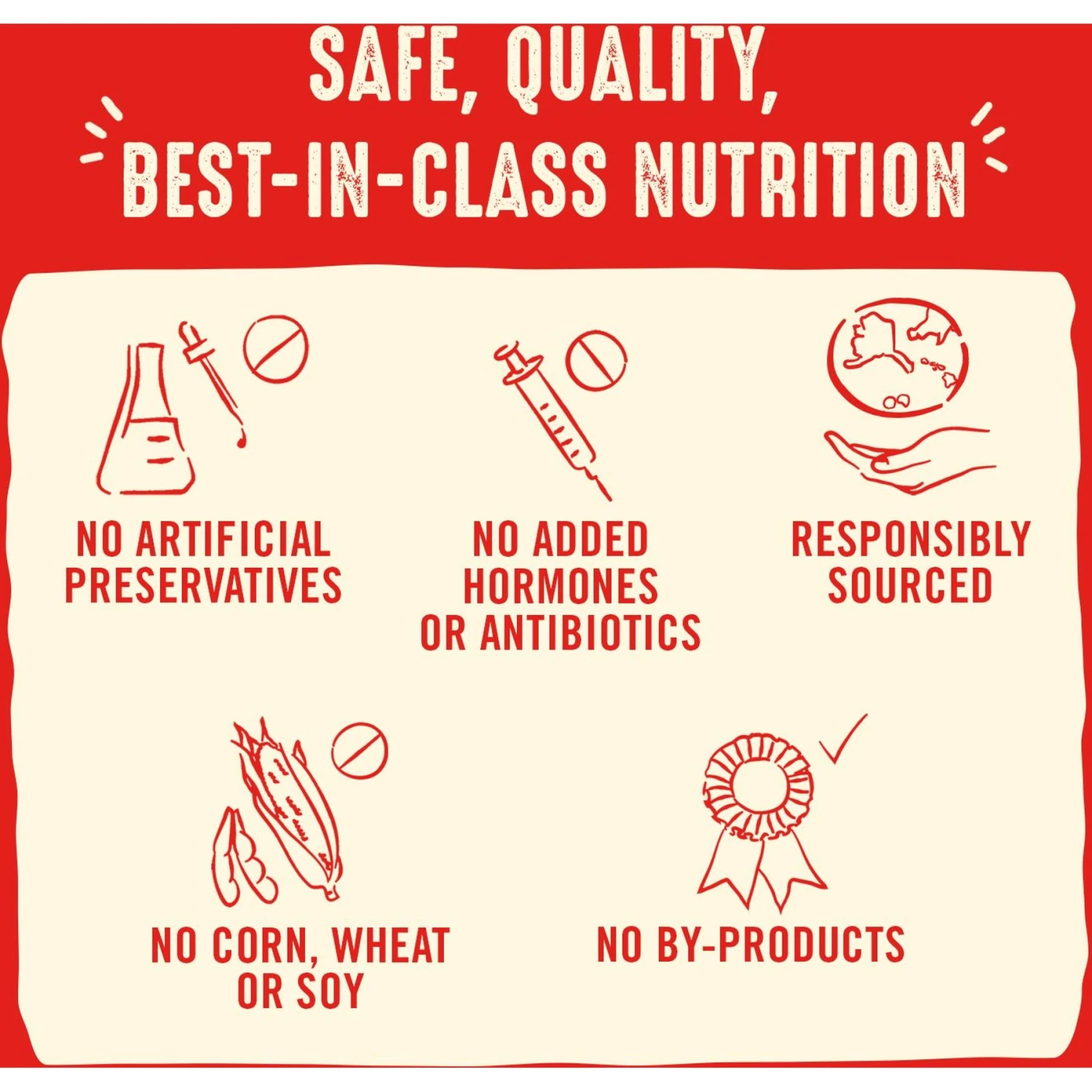 - Made with grass-fed beef raised without hormones or antibiotics and wild-caught salmon, along with 100% organic-certified fruits and vegetables.