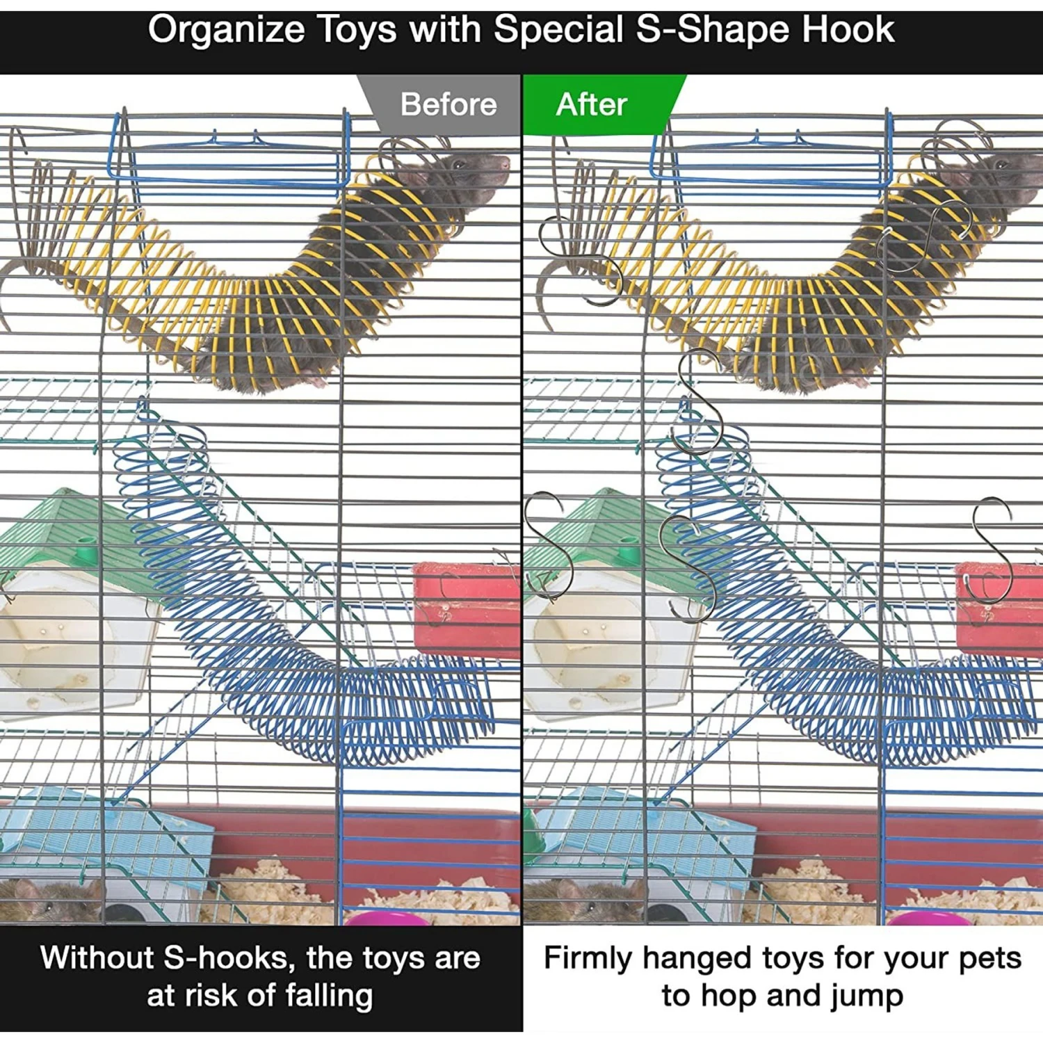 SunGrow Metal S Hooks For Hanging Small Animal & Bird Cage Toys, Plants & Kitchen Utensils