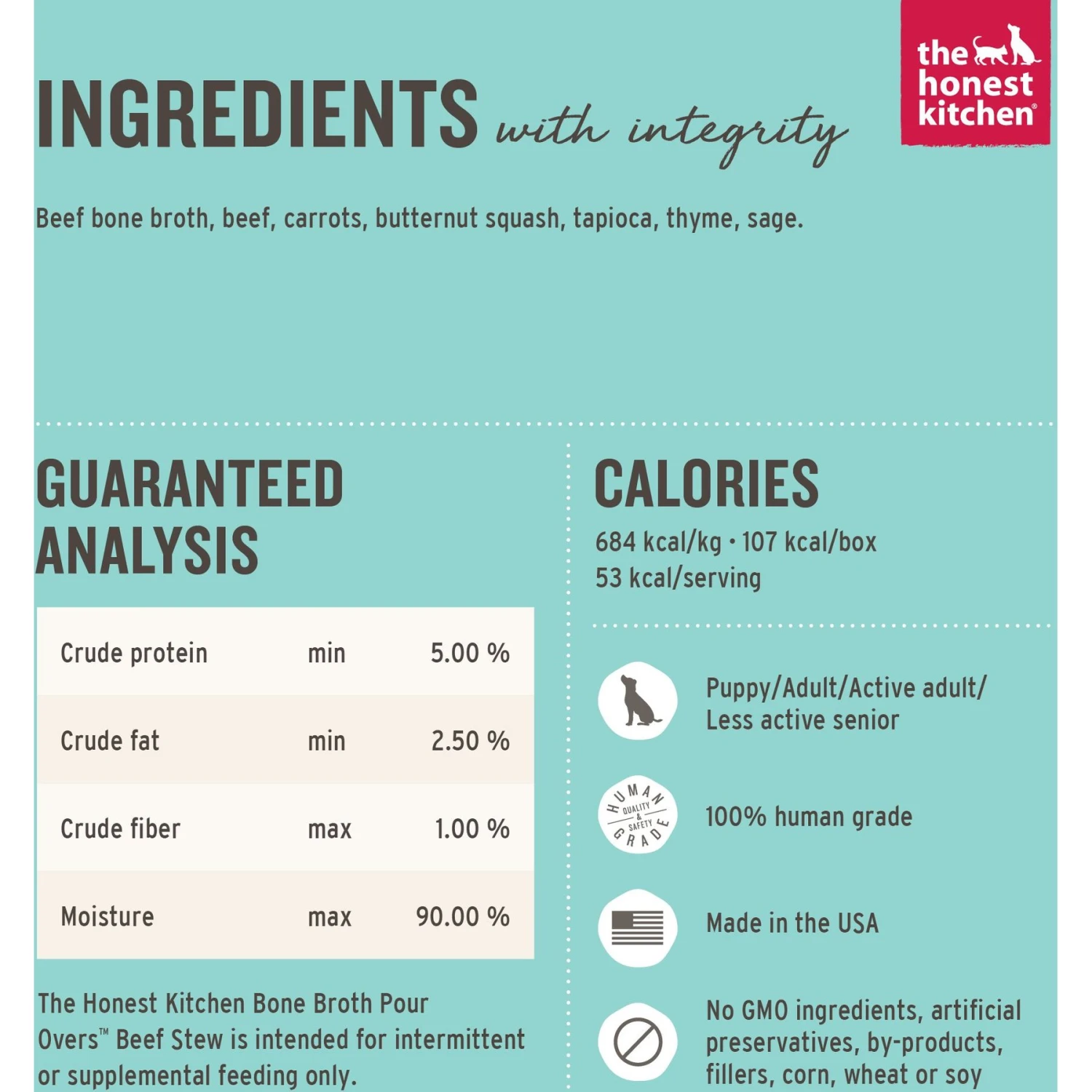 The Honest Kitchen Bone Broth POUR OVERS Turkey & Salmon Stew Wet Dog Food Topper & The Honest Kitchen Bone Broth POUR OVERS Beef Stew Wet Dog Food Topper