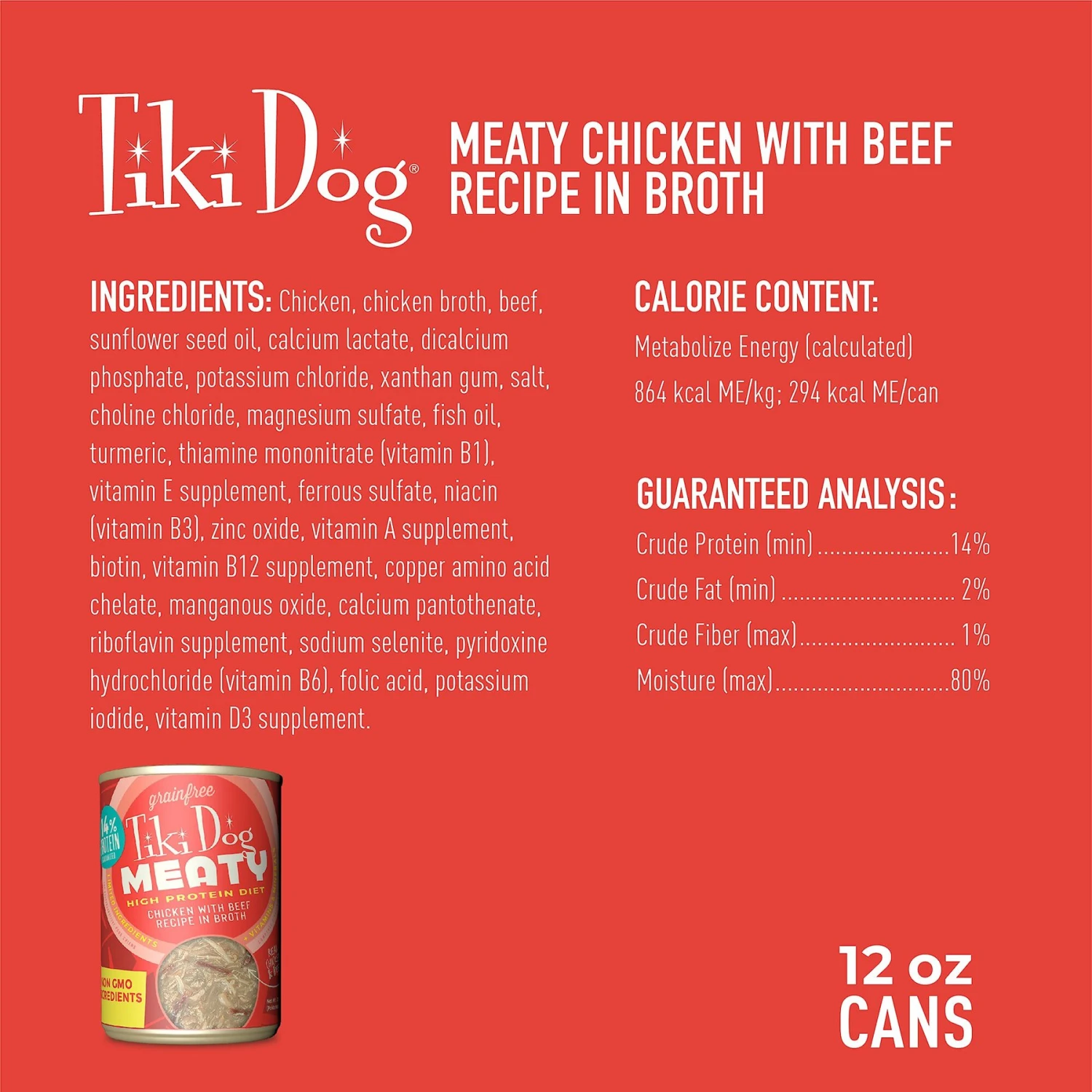 Tiki Dog Meaty Whole Foods Grain-Free Chicken & Beef Shredded Canned Dog Food, 12-oz, Case Of 8
